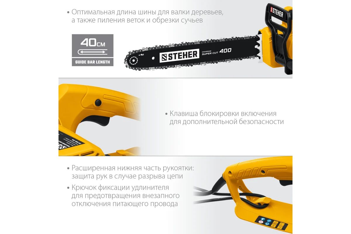 Электропила STEHER ES-2040 - это надежный, мощный и удобный инструмент, который станет незаменимым помощником в любых работах, связанных с распилом древесины.
