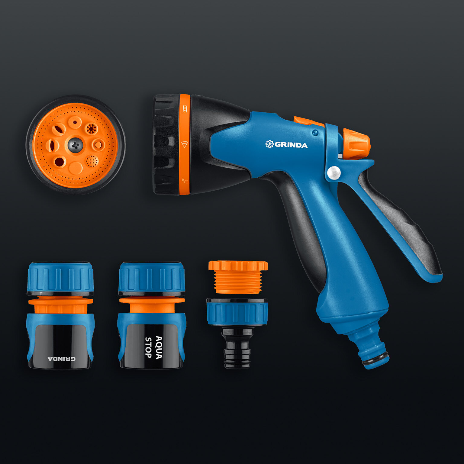 Поливочный набор GRINDA очень удобен в применении. Обеспечивает быстрое, простое и качественное подключение к практически любой поливочной системе без дополнительных аксессуаров.