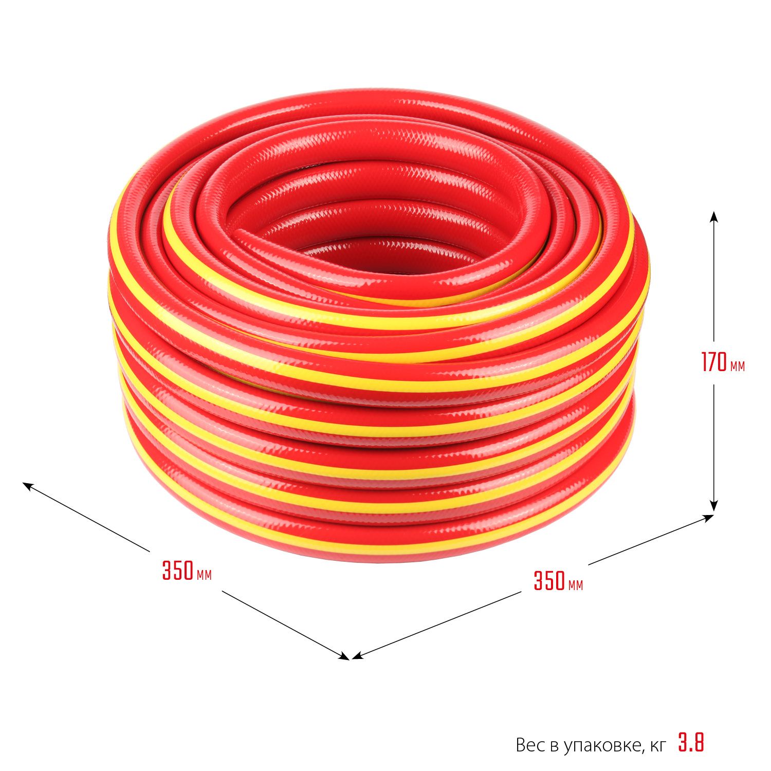 - Трехслойная структура и диагональное армирование обеспечивают прочность и долговечность шланга.