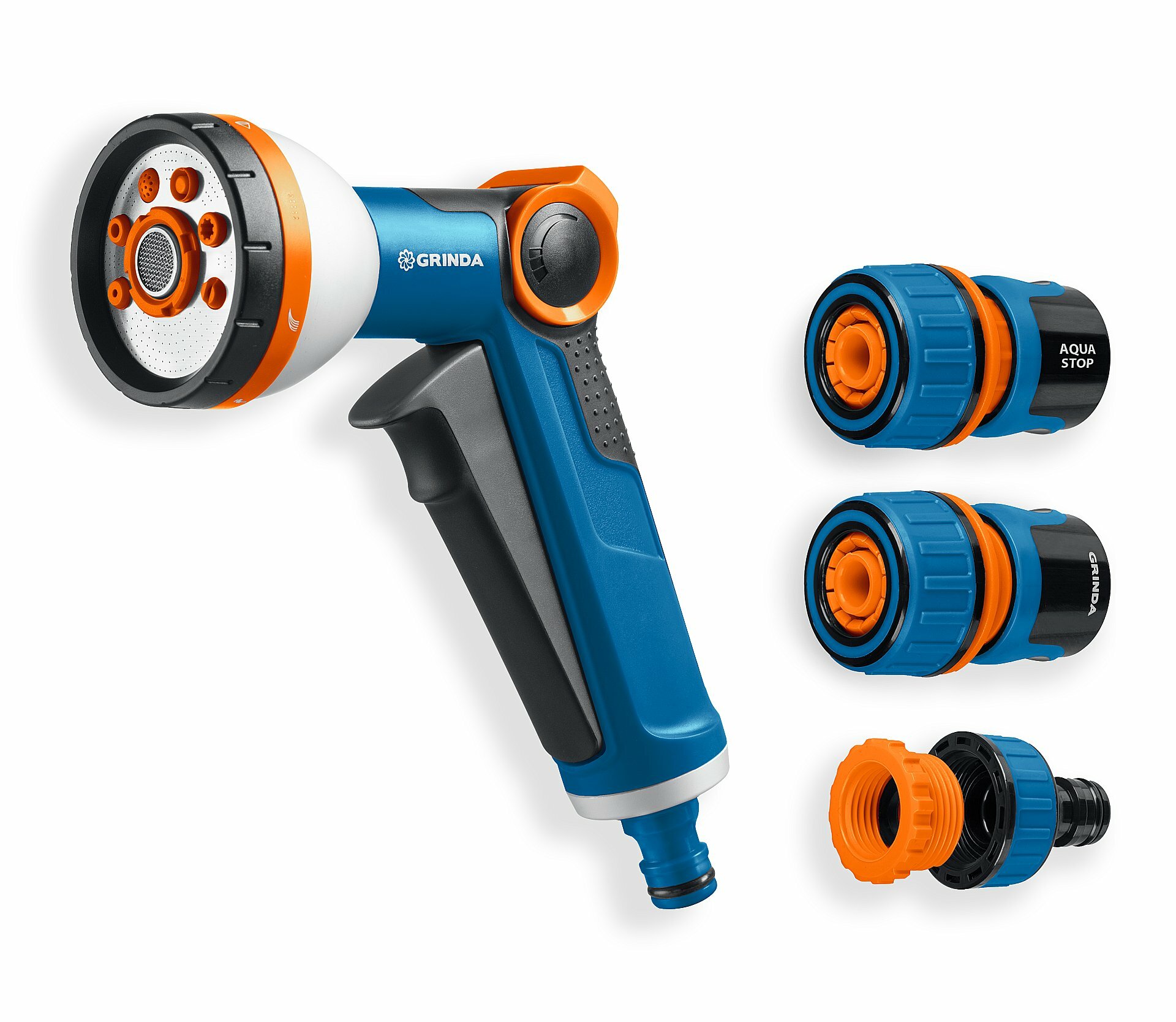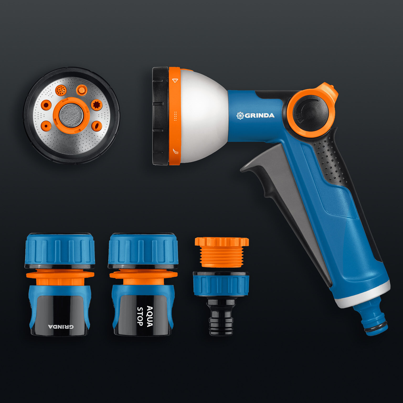 Поливочный набор GRINDA очень удобен в применении. Обеспечивает быстрое, простое и качественное подключение к практически любой поливочной системе без дополнительных аксессуаров.
