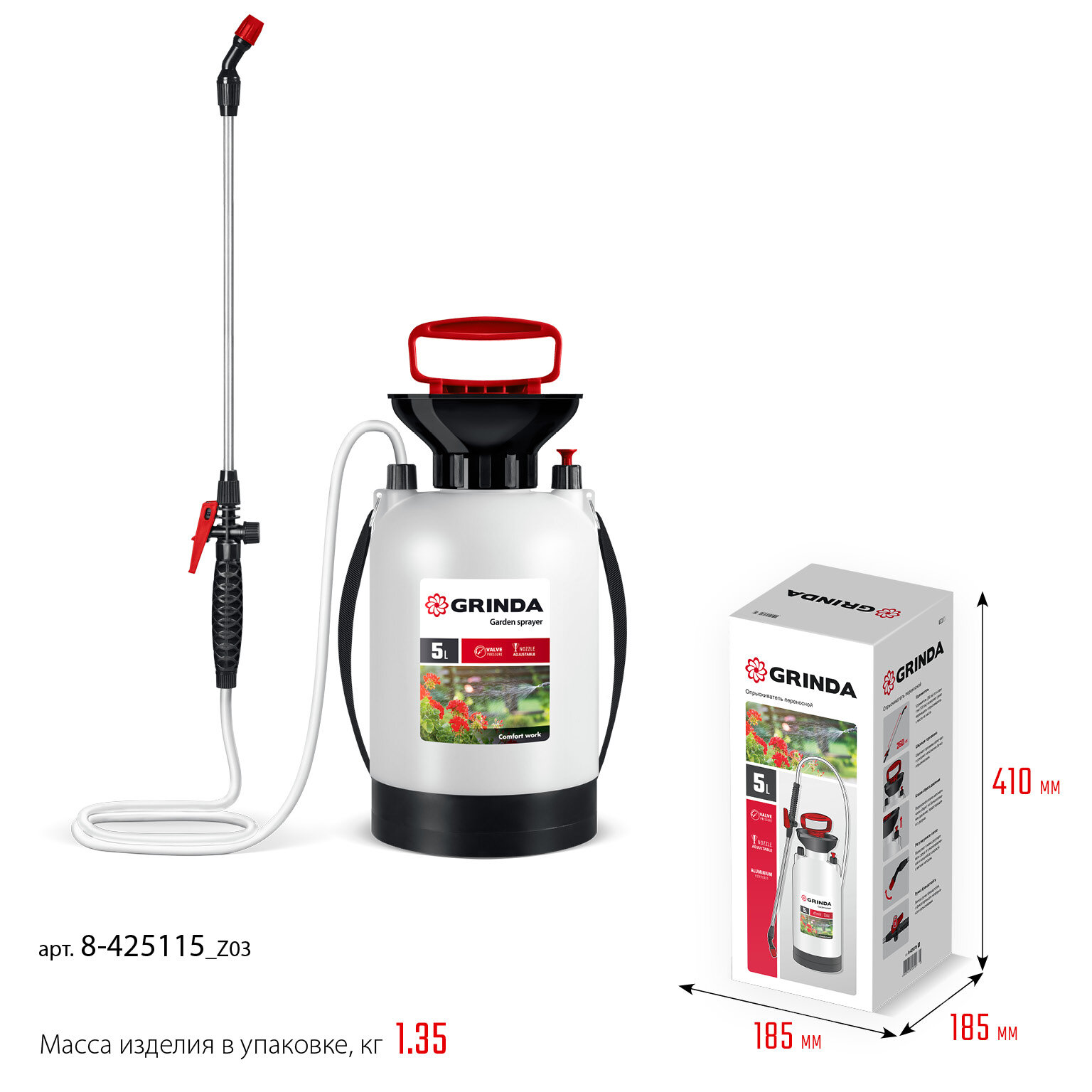 Выбирая опрыскиватель GRINDA TS-5, вы получаете надежный и долговечный инструмент для ухода за растениями и садом.