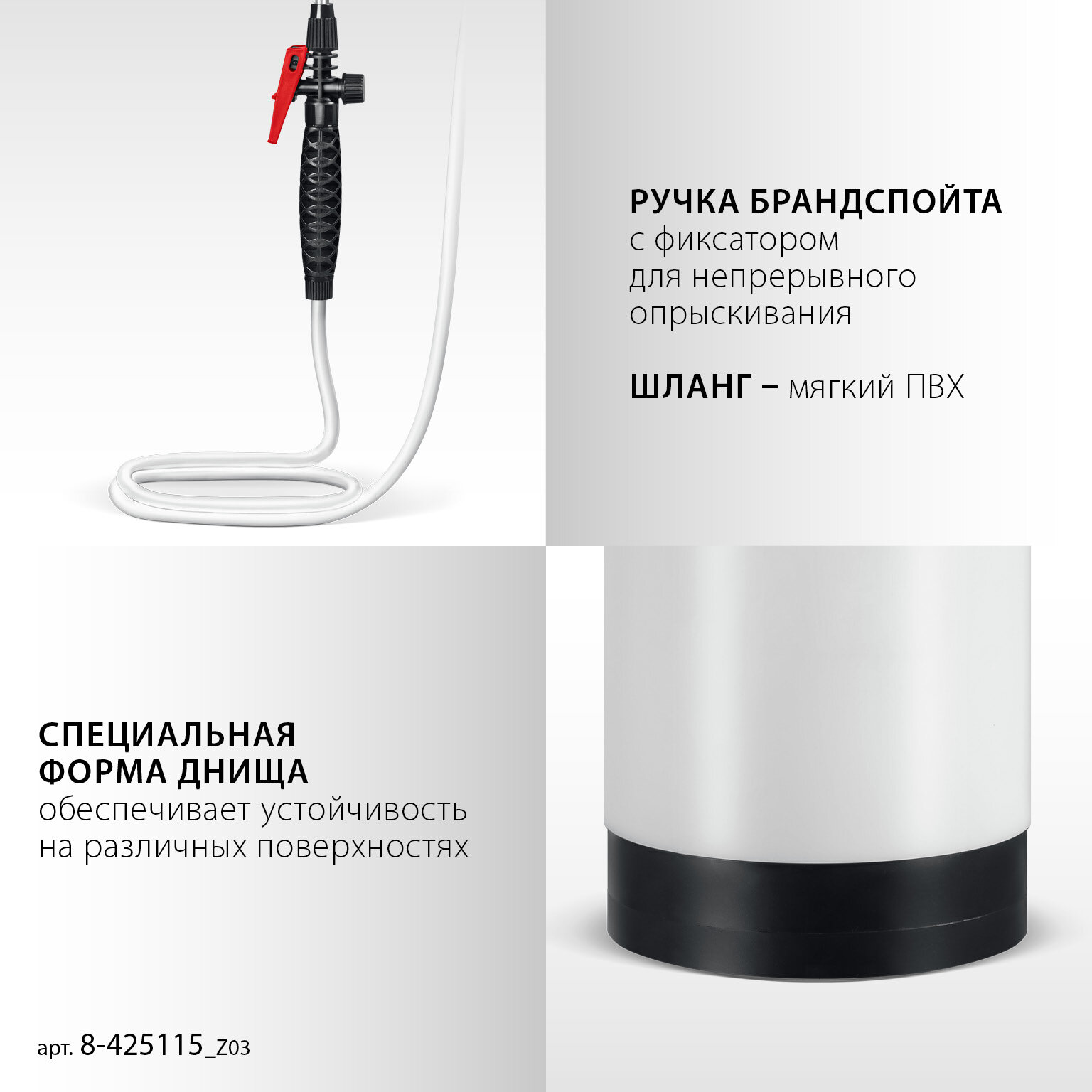 Широкая горловина позволяет легко и быстро наполнять опрыскиватель жидкостью, а устойчивое днище гарантирует стабильность и безопасность при использовании.