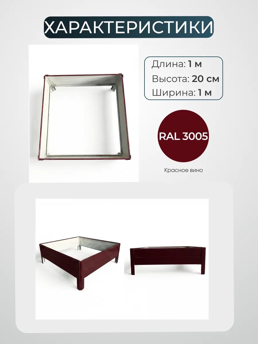 Металлическая грядка предназначена для сада и дачи. Она выполнена в популярном оттенке красное вино, соответствующем стандарту RAL 3005. Благодаря оптимальной высоте борта 20см и размеру 1х1 метра, изделие идеально подходит для выращивания ягод, зелени, пряных трав, а также цветов. Ивановская грядка обеспечивает аккуратный вид участка, помогает организовать пространство и облегчает уход за растениями. Современный металлический материал устойчив к погодным условиям, не деформируется и не подвержен гниению, что гарантирует долгий срок службы даже при интенсивном использовании на открытом воздухе. Прочное покрытие защищает от коррозии, сохраняя привлекательный внешний вид и насыщенный цвет на протяжении многих сезонов. Установка осуществляется с помощью саморезов, что делает сборку быстрой и удобной даже для начинающих садоводов.Красная конструкция гармонично вписывается в любой ландшафт, подчеркивая естественную красоту сада или дачи. Грядка подходит для размещения на различных типах почвы, помогает поддерживать порядок на участке и предотвращает разрастание сорняков. Металлическая основа обеспечивает устойчивость, а оптимальная высота борта позволяет легко ухаживать за растениями без лишних усилий.Продукт предназначен для тех, кто ценит практичность и аккуратность в организации пространства для выращивания растений. Грядка подойдет для оформления клумб, высадки сезонных культур, обустройства уголков для любимых ягод или декоративных цветов. Благодаря компактным размерам, изделие можно использовать даже на небольших участках, создавая красивые и функциональные зоны для посадки.Использование красная металлическая грядка — это современное решение для сада и дачи, позволяющее рационально использовать территорию и получать отличный результат от выращивания растений. Качественный материал и надежное соединение элементов обеспечивают долговечность и удобство эксплуатации.
