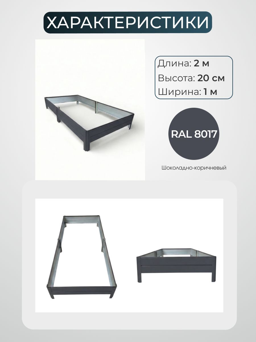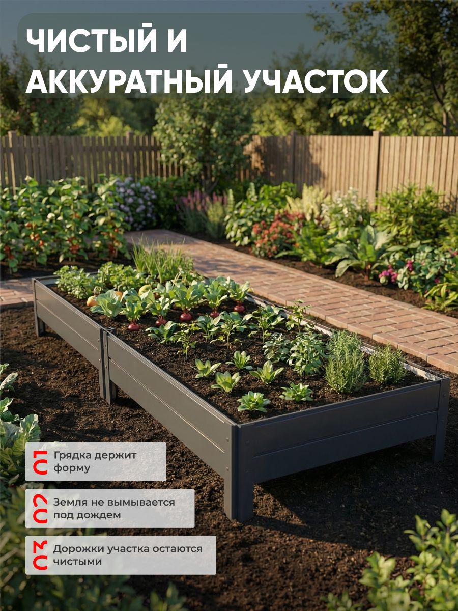 Металлическая грядка Ивановская 1х2 метра, в сером графитовом цвете RAL 7024 создана для удобного обустройства огорода, сада или дачи. Этот садовый элемент отлично подходит для выращивания цветов, ягод и овощей, обеспечивая аккуратные и организованные посадки. Оцинкованная поверхность защищает конструкцию от коррозии, что продлевает срок эксплуатации и сохраняет привлекательный внешний вид на долгое время.Высокие борта позволяют сформировать грядку с четкими границами, что удобно для работы с почвой и ухода за растениями. Такой вариант идеально подходит для использования в теплице, где важна аккуратность и контроль условий выращивания. Сборка конструкции происходит при помощи саморезов, что обеспечивает надежность и устойчивость конструкции.Серый графитовый оттенок RAL 7024 гармонично впишется в любой садовый ландшафт, создавая красивое и аккуратное пространство для посадок. Грядка отлично подойдет для создания структурированных зон на участке, облегчая уход за растениями и поддерживая порядок. Конструкция разработана с учетом потребностей садоводов и огородников, которые ценят практичность и долговечность.Использование оцинкованного металла гарантирует устойчивость к погодным условиям и механическим повреждениям. Это делает грядку подходящей как для открытого грунта, так и для установки внутри теплицы. Благодаря компактным размерам и продуманной сборке, изделие легко транспортировать и устанавливать.Данный садовый элемент станет надежной основой для выращивания различных культур, включая ягоды и цветы. Он помогает организовать пространство, улучшая эстетическое восприятие участка и способствуя эффективному использованию земли. Серая графитовая грядка в оттенке RAL 7024 – это функциональное решение для тех, кто ценит качество и удобство в садовом обустройстве.Такой продукт подходит для разных типов участков, включая дачи и приусадебные территории. Он упрощает процесс посадки и ухода за растениями, делая работу в саду более комфортной и приятной.
