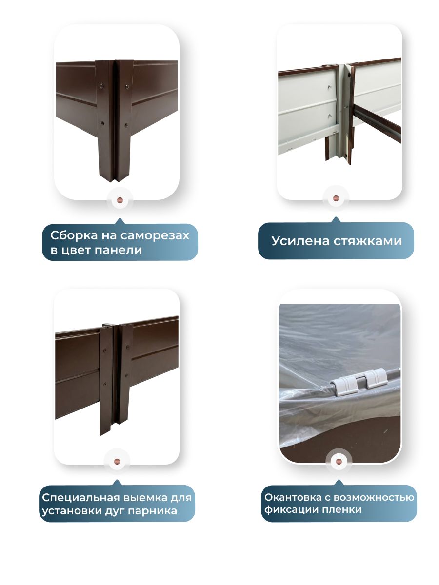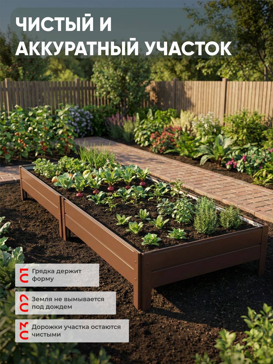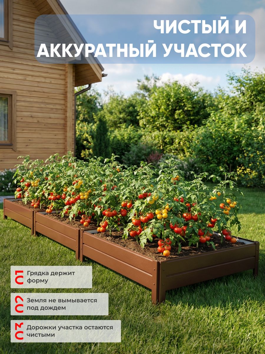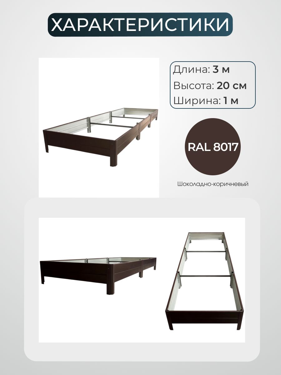 Красивая металлическая грядка Ивановская предназначена для сада, дачи и огорода. Грядка садовая размером 1х3 метра выполнена в коричневом цвете по палитре RAL 8017, что гармонично вписывается в природный ландшафт и придает аккуратный вид участку. Высота борта составляет 20см, что обеспечивает оптимальные условия для выращивания различных культур, таких как ягоды, цветов и овощей. Конструкция подходит для использования в теплицу и на открытом воздухе. Благодаря металлической основе изделие устойчиво к воздействию влаги, не подвержено деформации и сохраняет форму в течение длительного времени.Садовая грядка легко собирается при помощи саморезов, что делает процесс установки простым и быстрым. Поверхность устойчива к коррозии, что позволяет использовать изделие в любых климатических условиях, включая повышенную влажность и перепады температур. Коричневая окраска по стандарту RAL 8017 обеспечивает не только эстетичность, но и дополнительную защиту от внешних воздействий.Такое решение подходит для обустройства грядок в садах и огородах, организации пространства для выращивания овощей, ягод и цветов. Металлическая конструкция не требует дополнительного ухода, устойчива к механическим повреждениям и не теряет внешнего вида со временем. Высота борта 20см позволяет формировать плодородный слой почвы, удерживать влагу и предотвращать размывание земли. Это особенно актуально для участков с неровным рельефом или склонностью к подтоплениям.Коричневая садовая грядка подходит для оформления пространства на даче, в теплицу или на участке возле дома. Цвет изделия RAL 8017 отлично сочетается с зеленью растений, не выделяется на фоне почвы и позволяет создавать аккуратные ряды. Благодаря использованию металла грядка выдерживает значительные нагрузки, не прогибается и не разрушается под весом почвы или растений.Использование металлической грядки Ивановская облегчает уход за растениями, позволяет удобно размещать рассаду, ягоды или цветов.