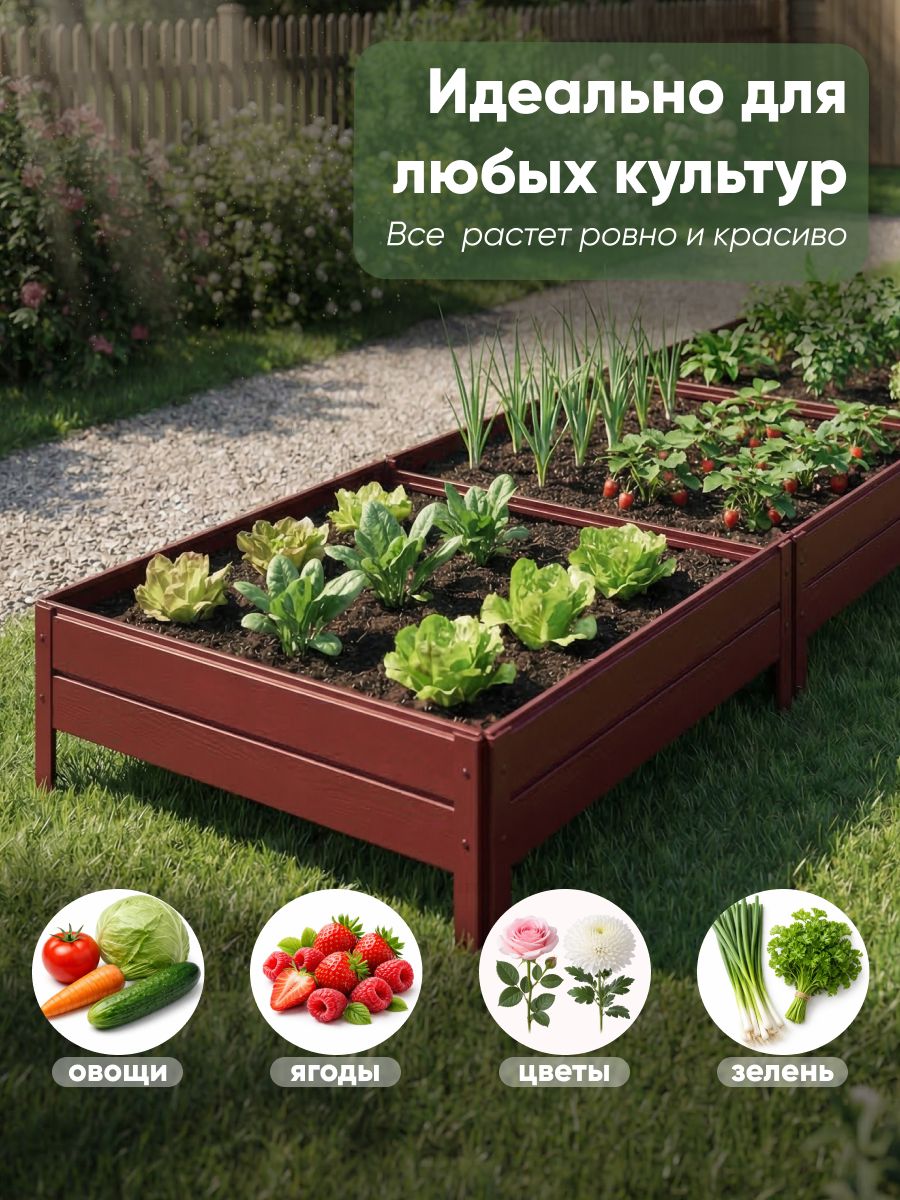 Грядка Ивановская 1х6 метра с бортиком высотой 20 см в красном цвете RAL 3005 создана для удобного выращивания овощей, ягод и цветов в саду и на даче. Металлическая конструкция обеспечивает долговечность и устойчивость к внешним воздействиям, что делает ее практичным решением для обустройства огорода. Такая садовая грядка подходит для использования в теплице и открытом грунте, позволяя организовать аккуратные и красивые посадки.Изделие отличается простотой сборки с помощью саморезов, что облегчает монтаж без необходимости в специализированных инструментах. Красная окраска гармонично впишется в любой ландшафтный дизайн, подчеркивая природную атмосферу участка. Высокий борт защищает растения от повреждений и помогает сохранять форму грядки на протяжении всего сезона.Использование металлических материалов гарантирует устойчивость к коррозии и механическим нагрузкам, что важно для садовой конструкции, эксплуатируемой на открытом воздухе. Грядка Ивановская позволит организовать пространство на даче максимально эффективно, обеспечивая комфортные условия для роста различных культур. Она подходит для выращивания как декоративных цветов, так и съедобных растений, что делает ее универсальным элементом садового участка.Такой вариант грядки особенно удобен для тех, кто ценит порядок и аккуратность в огороде. Надежность конструкции способствует долгому сроку эксплуатации без потери внешнего вида и функциональности. Цвет RAL 3005 подчеркивает природную красоту и практичность, а коричневый оттенок легко сочетается с окружающей растительностью.Грядка в размере 1х6 метра обеспечивает достаточное пространство для посадок, позволяя разместить разнообразные культуры. Высота борта помогает сохранить плодородный слой почвы и облегчает уход за растениями, снижая риск повреждений при прополке и поливе. Такой элемент станет незаменимым помощником в организации огорода, делая работу более удобной и продуктивной.