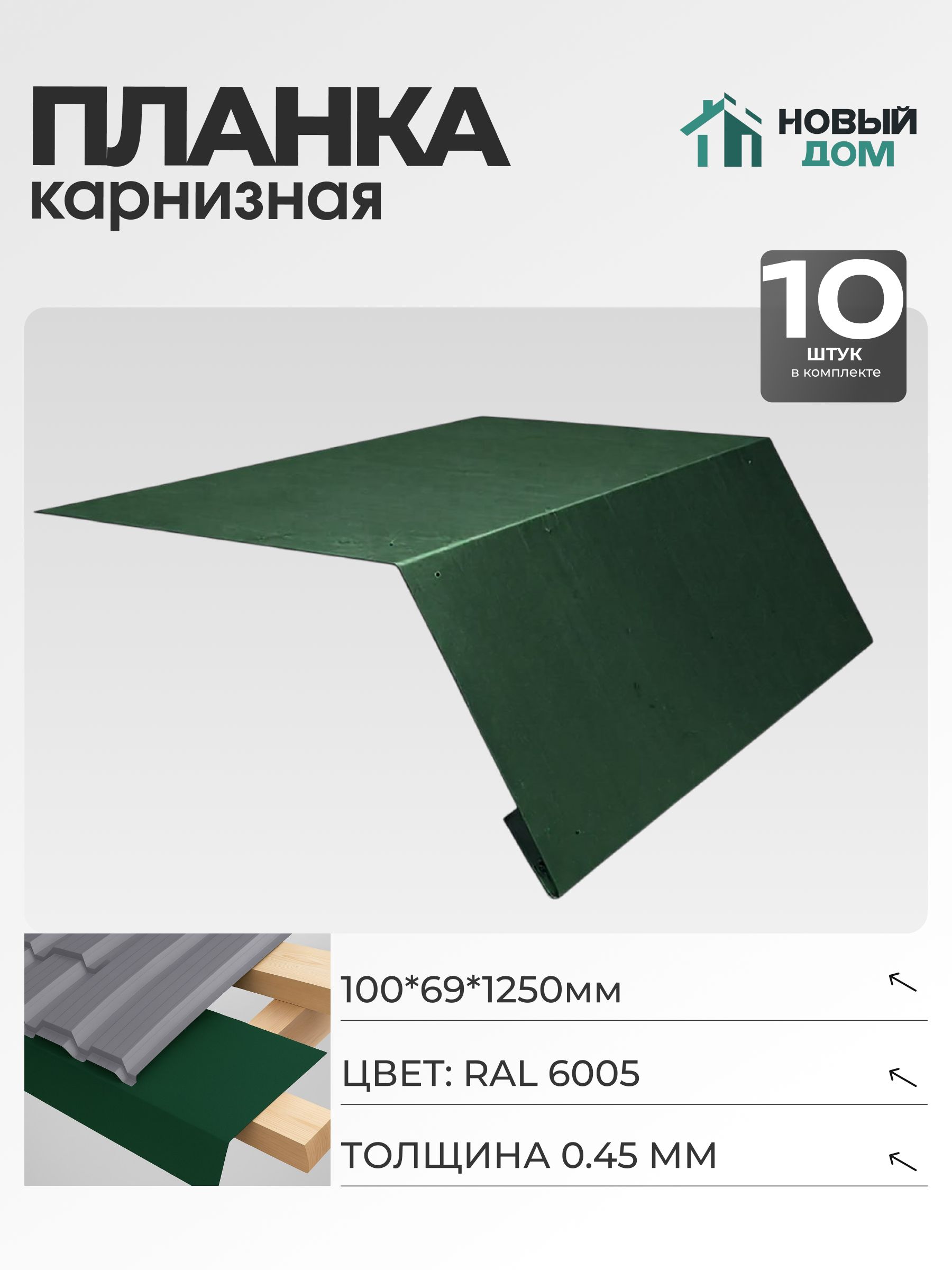 Капельник имеет размеры 100х69 мм и длину 1250 мм, что позволяет использовать его на различных типах крыш, включая бани, гаражи, хозяйственные строения и частные дома.