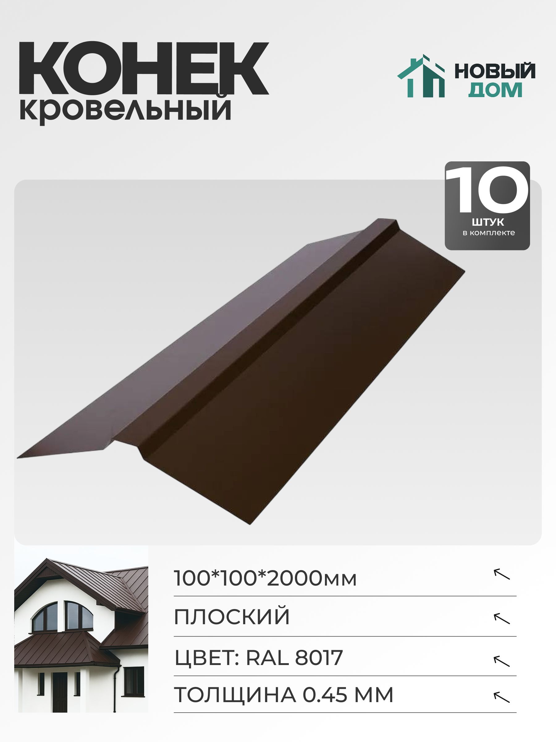 Конек кровельный, плоский 100x100x2000мм, комплект 10шт, RAL8017, 0,45мм - это надежный и качественный выбор для тех, кто стремится к долговечности и красоте своей крыши. Приобретите этот товар сегодня и сделайте свой дом более безопасным и красивым!