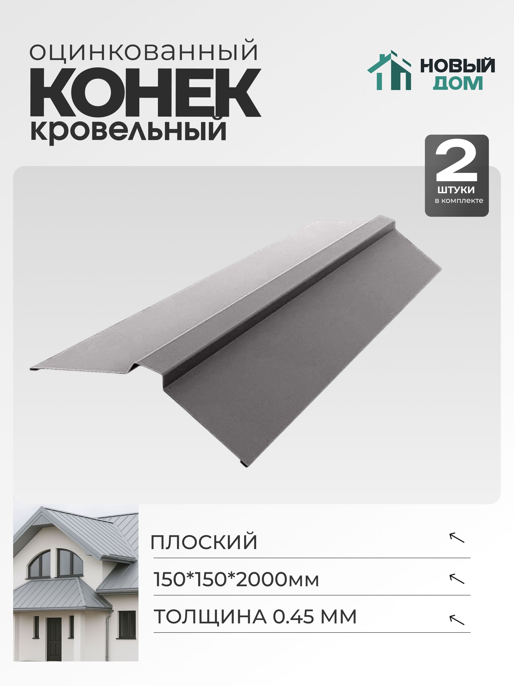 Оцинкованный конек кровельный плоский размером 150*150*2000мм представляет собой надежное решение для организации кровельной конструкции. Изготовленный из стали с толщиной металла 0,45мм, он обладает высокой устойчивостью к коррозии и механическим нагрузкам, что значительно увеличивает срок эксплуатации кровли. Этот комплект включает 2шт изделий, что обеспечивает удобство монтажа и экономию времени.Деталь имеет плоскую форму, что позволяет легко крепить и интегрировать материал в систему крыши разных типов. Благодаря оцинкованному покрытию, изделие устойчиво к воздействию погодных факторов — влаги, ультрафиолета, температурных перепадов. Размеры 150*150*2000мм позволяют использовать конек для кровель различных размеров и типов, обеспечивая надежную защиту и герметичность верхнего участка кровельного пирога.Практичная толщина 0,45мм оптимально сочетается с прочностью и гибкостью, что облегчает работу с металлом на месте установки. Такой строительный элемент предотвращает образование щелей и проникновение влаги, что важно для сохранения теплоизоляционных и гидроизоляционных свойств кровельного покрытия. Плоскость конька позволяет обеспечить аккуратный внешний вид крыши и улучшить ее технические характеристики.Этот комплект из двух штук позволяет экономично воспользоваться материалом без необходимости дополнительного приобретения. Металл отличается высокой прочностью, что важно при эксплуатации в условиях снеговых нагрузок, ветра и атмосферных воздействий. Конек подходит для различных типов крыш и может использоваться как в частном, так и в промышленном строительстве.Использование данного изделия на кровле способствует долговечной эксплуатации покрытия, снижая риски протечек и деформаций. Оцинкованная поверхность сохраняет свои свойства долгое время без необходимости дополнительной обработки и ухода. Это гарантирует сохранение эксплуатационных качеств в течение всего срока службы.