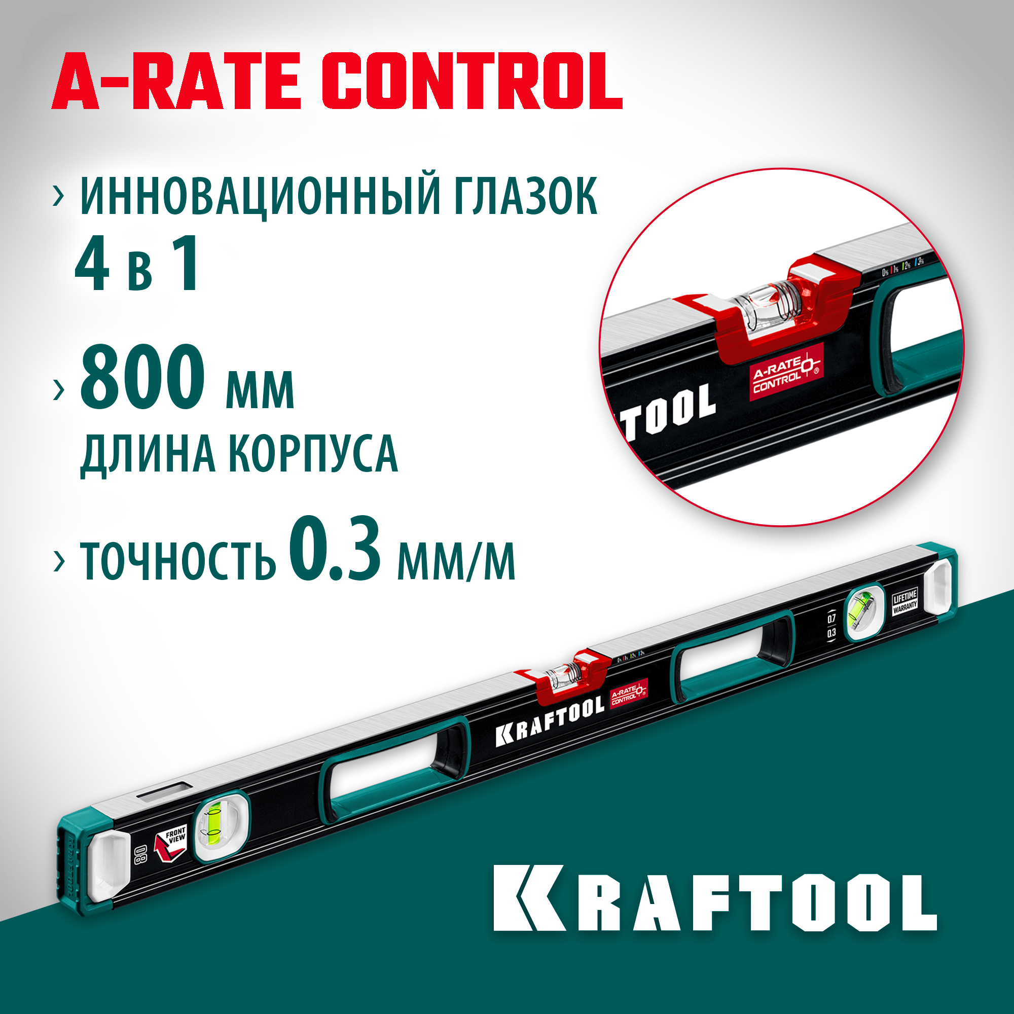 KRAFTOOL A-RATE CONTROL, 800 мм, точность 0.3 мм/м, с инновационным зеркальным глазком, сверхпрочный уровень (34986-80)