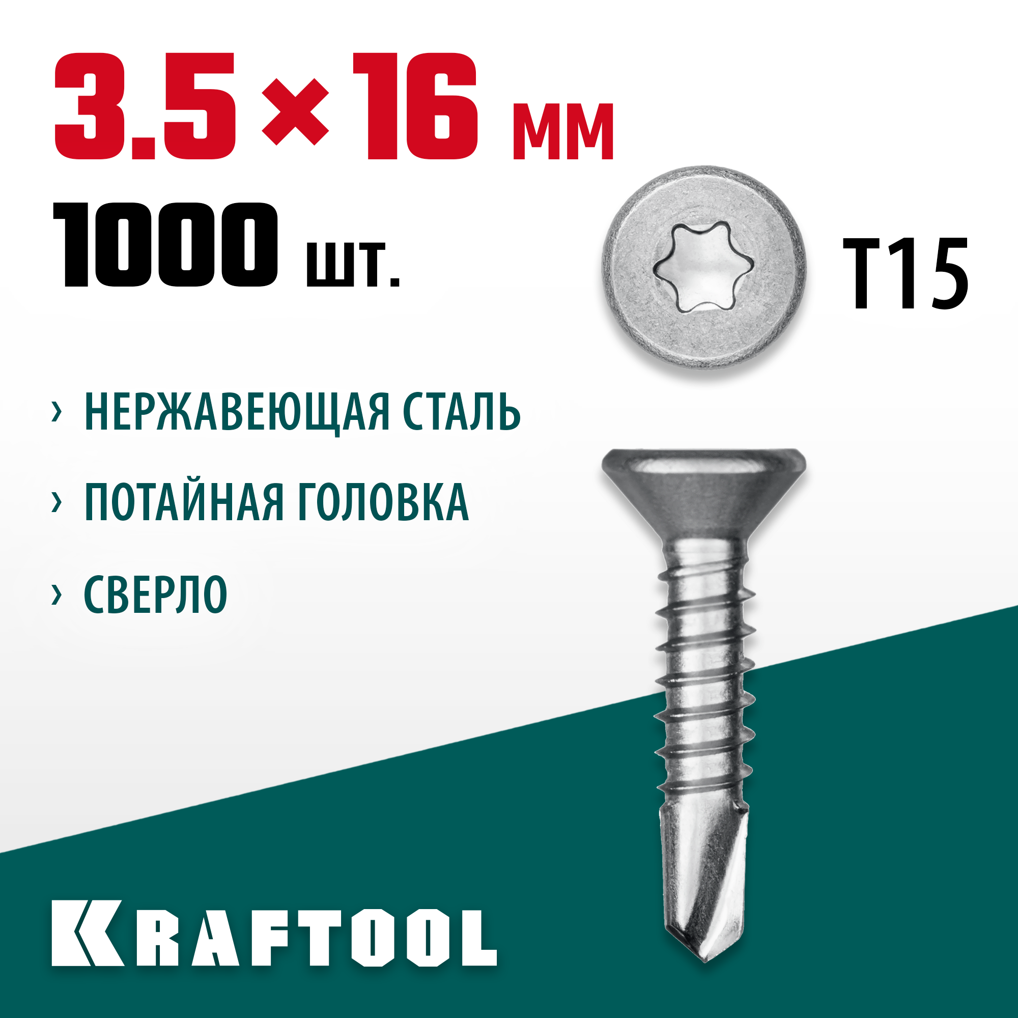 Особенностью саморезов KRAFTOOL DS-C является их потайная головка и сверло. Это обеспечивает аккуратное и незаметное крепление, а также облегчает процесс вкручивания.