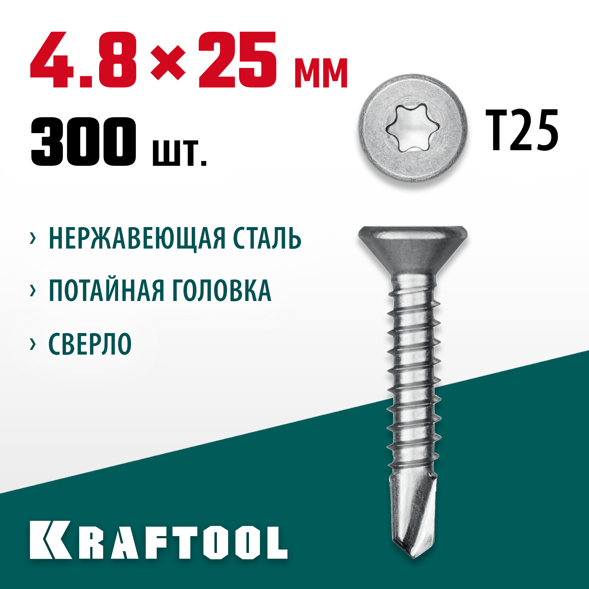 Саморезы KRAFTOOL DS-C имеют потайную головку и сверловой наконечник, что облегчает процесс вкручивания. Диаметр резьбы составляет 4.8 мм, длина изделия – 25 мм. Шаг резьбы равен 1.6 мм.