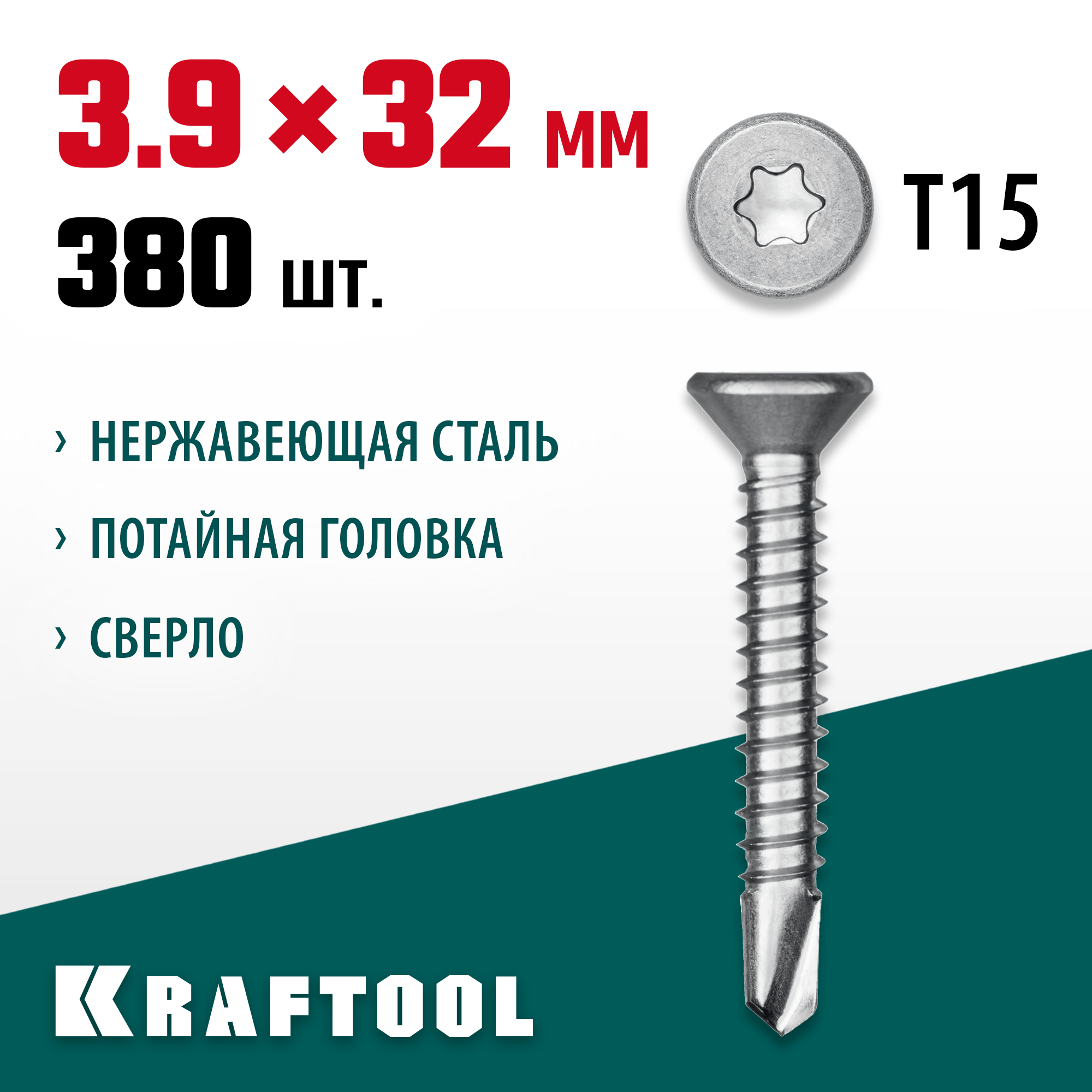 Саморезы KRAFTOOL DS-C оснащены потайной головкой и сверлом, что позволяет легко и быстро вкручивать их обычным шуруповертом или отверткой. Шлиц TORX обеспечивает надежное крепление и предотвращает срывание биты при закручивании.