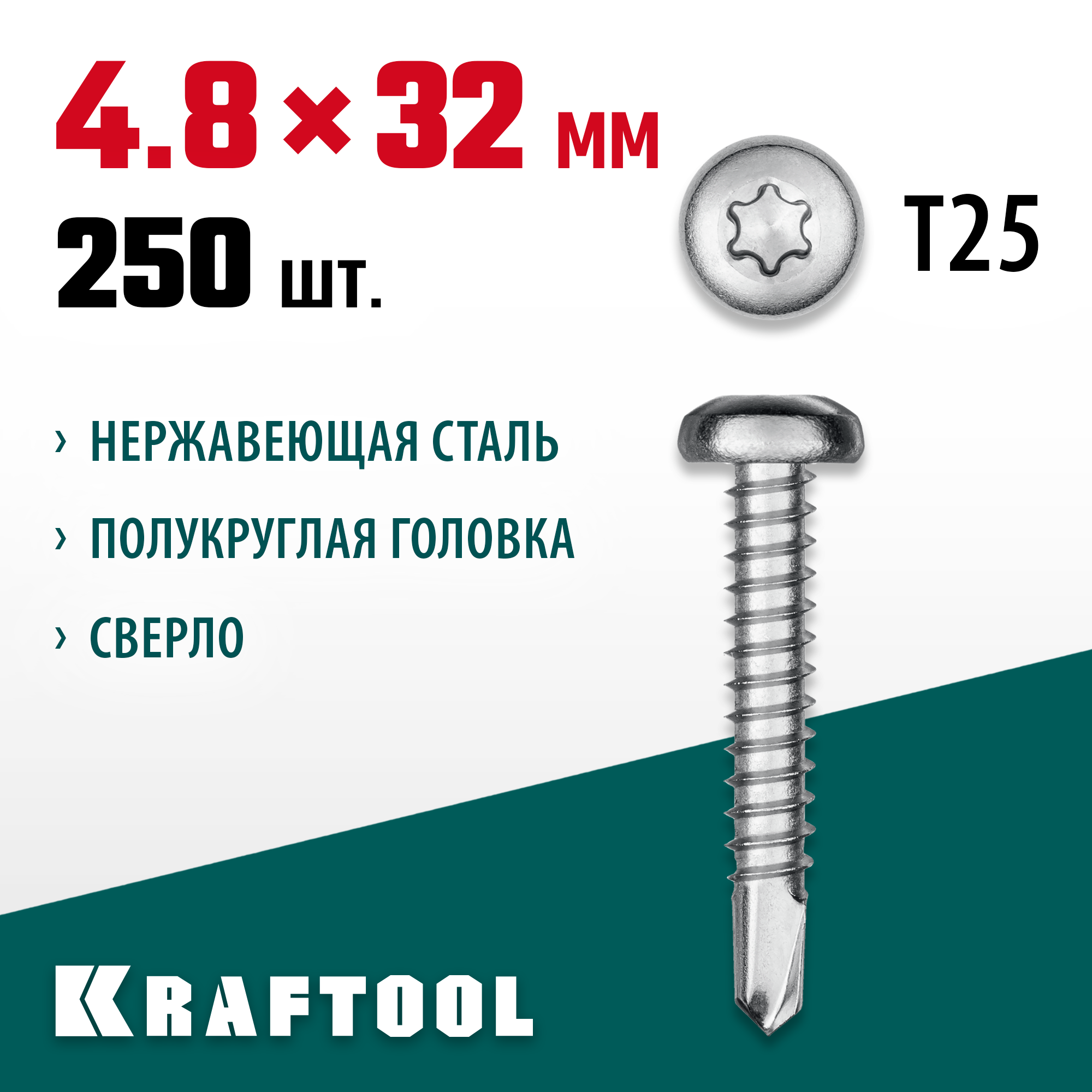В комплекте 250 штук саморезов размером 32 х 4.8 мм с ТХ25 шлицем.