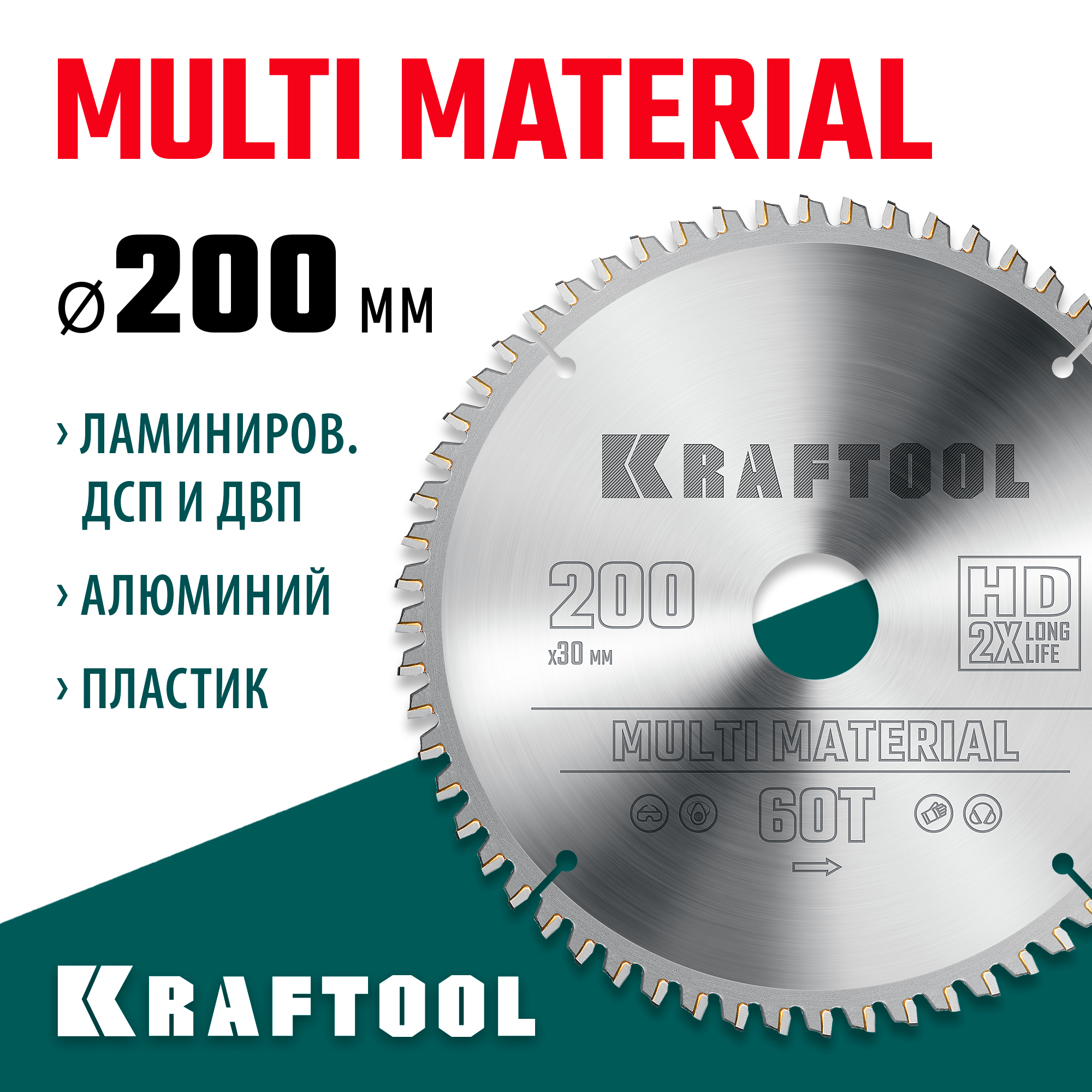 KRAFTOOL Multi Material, 200 х 30 мм, 60Т, пильный диск по алюминию (36953-200-30)
