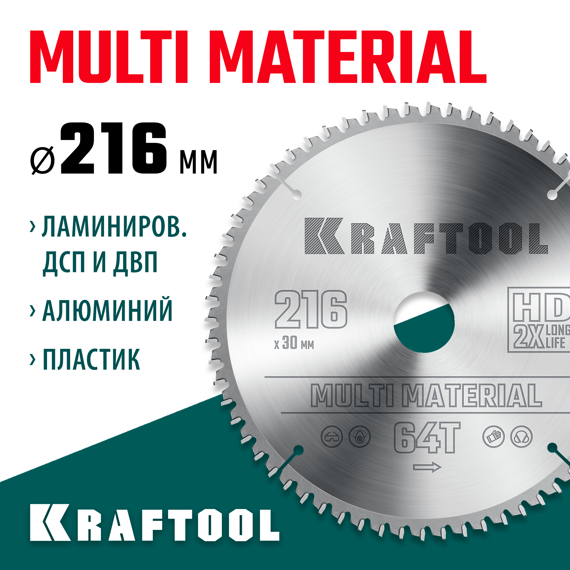 KRAFTOOL Multi Material, 216 х 30 мм, 64Т, пильный диск по алюминию (36953-216-30)