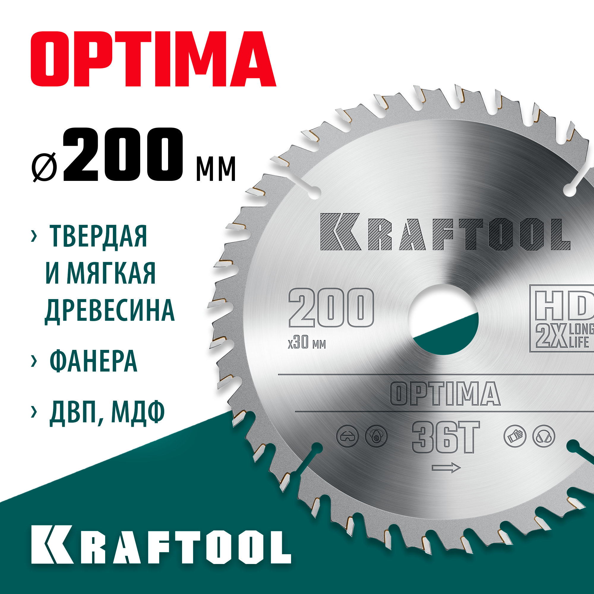 KRAFTOOL Optima, 200 х 30 мм, 36Т, пильный диск по дереву (36951-200-30)