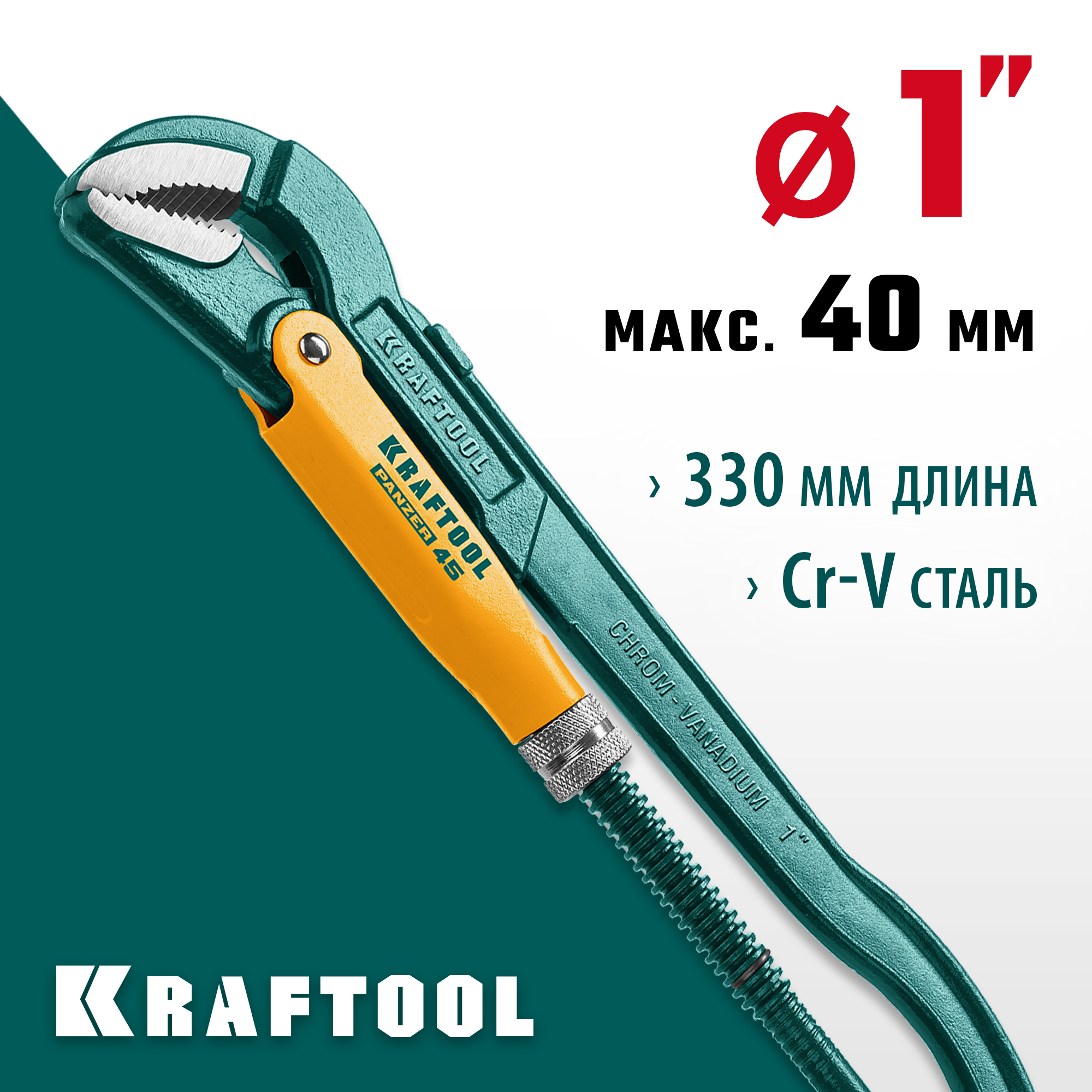 KRAFTOOL PANZER-45, №1, 1″, 330 мм, трубный ключ с изогнутыми губками (2735-10)
