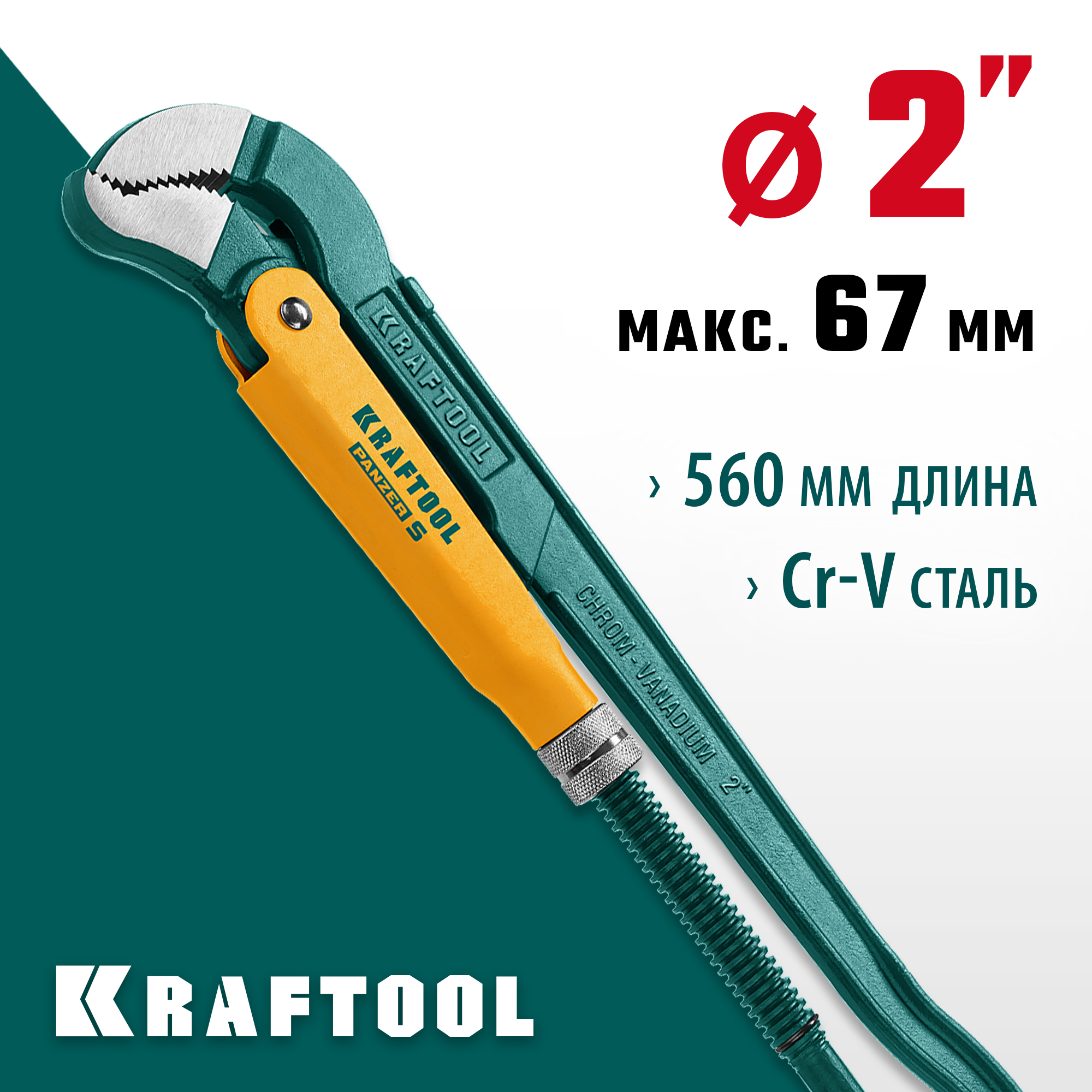 KRAFTOOL PANZER-S, №3, 2″, 560 мм, трубный ключ с изогнутыми губками (2733-20)