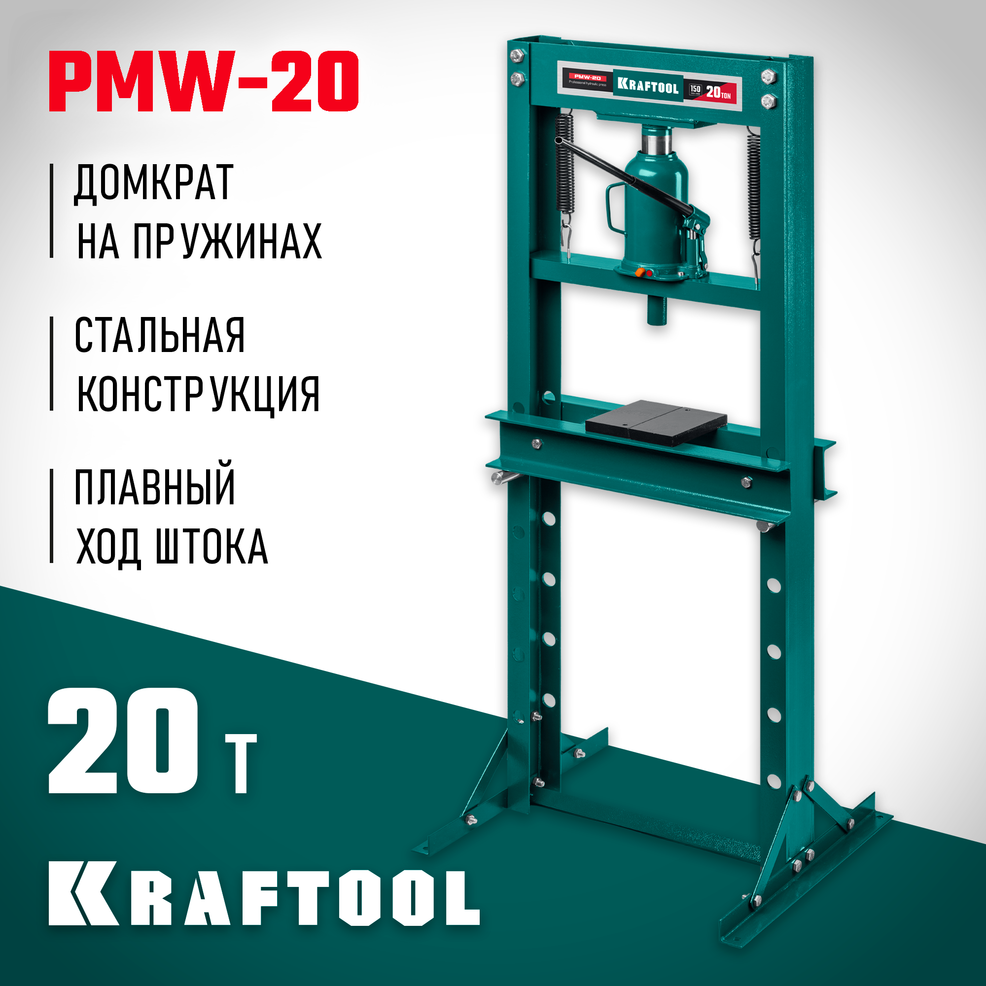 Пресс KRAFTOOL PMW-20 оснащен пружинами на домкрате, что гарантирует надежность запрессовки и предотвращает возможные повреждения деталей.