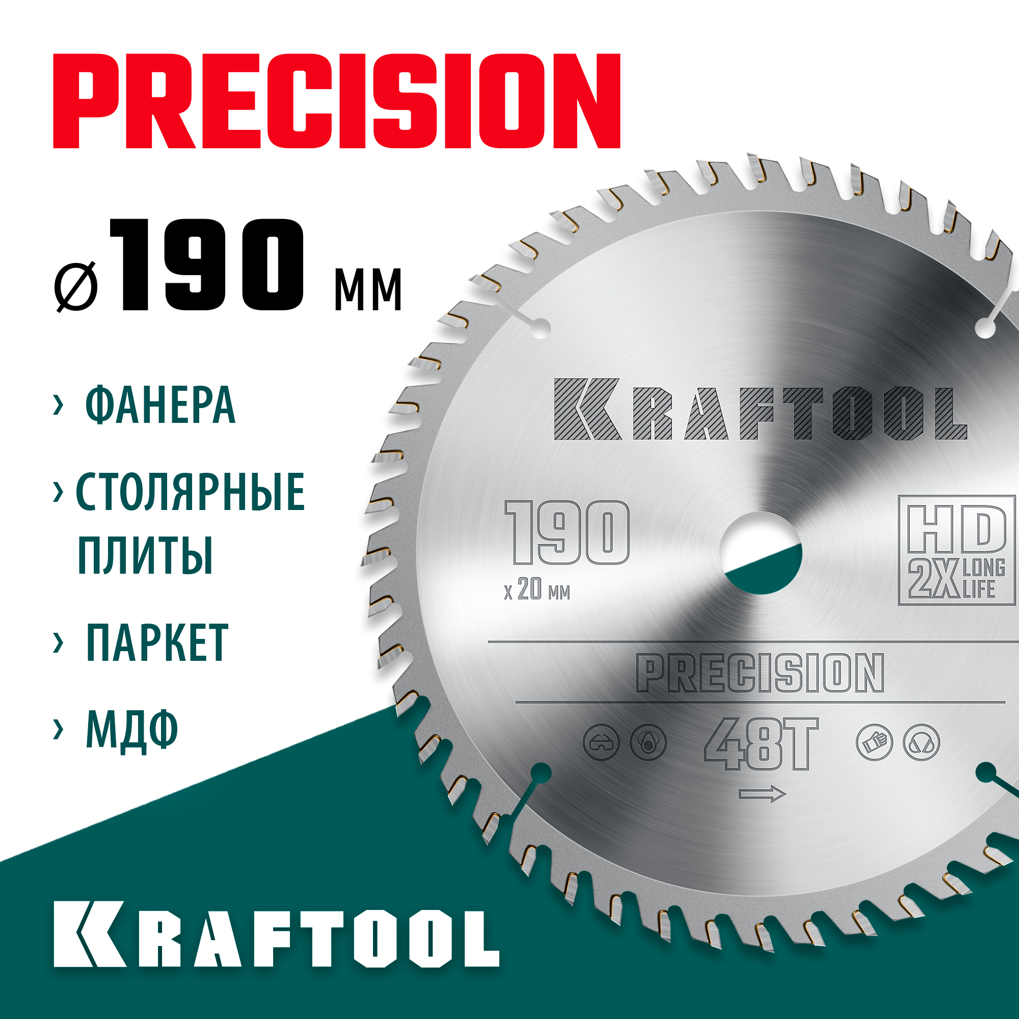 KRAFTOOL Precision, 190 х 20 мм, 48Т, пильный диск по дереву (36952-190-20)
