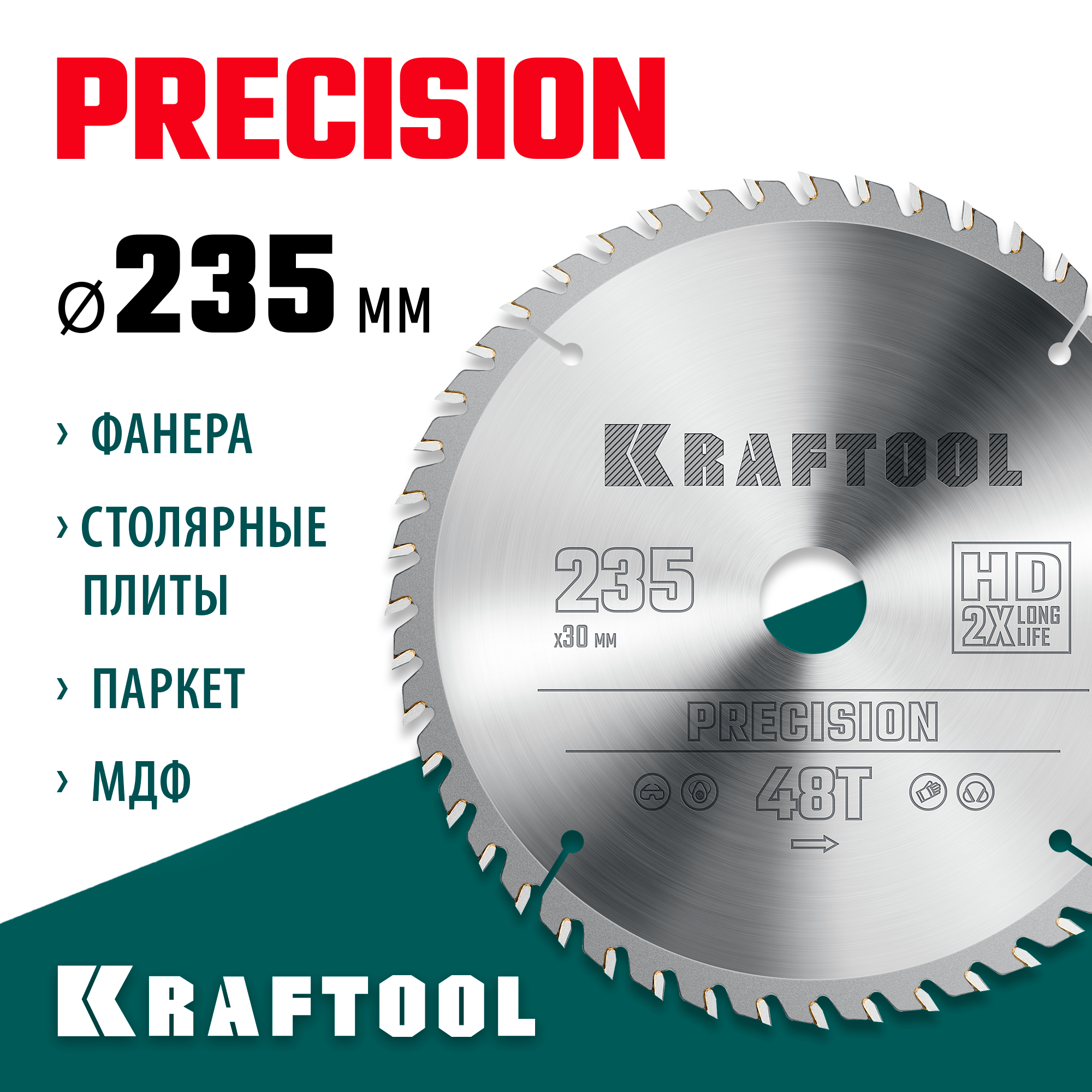KRAFTOOL Precision, 235 х 30 мм, 48Т, пильный диск по дереву (36952-235-30)