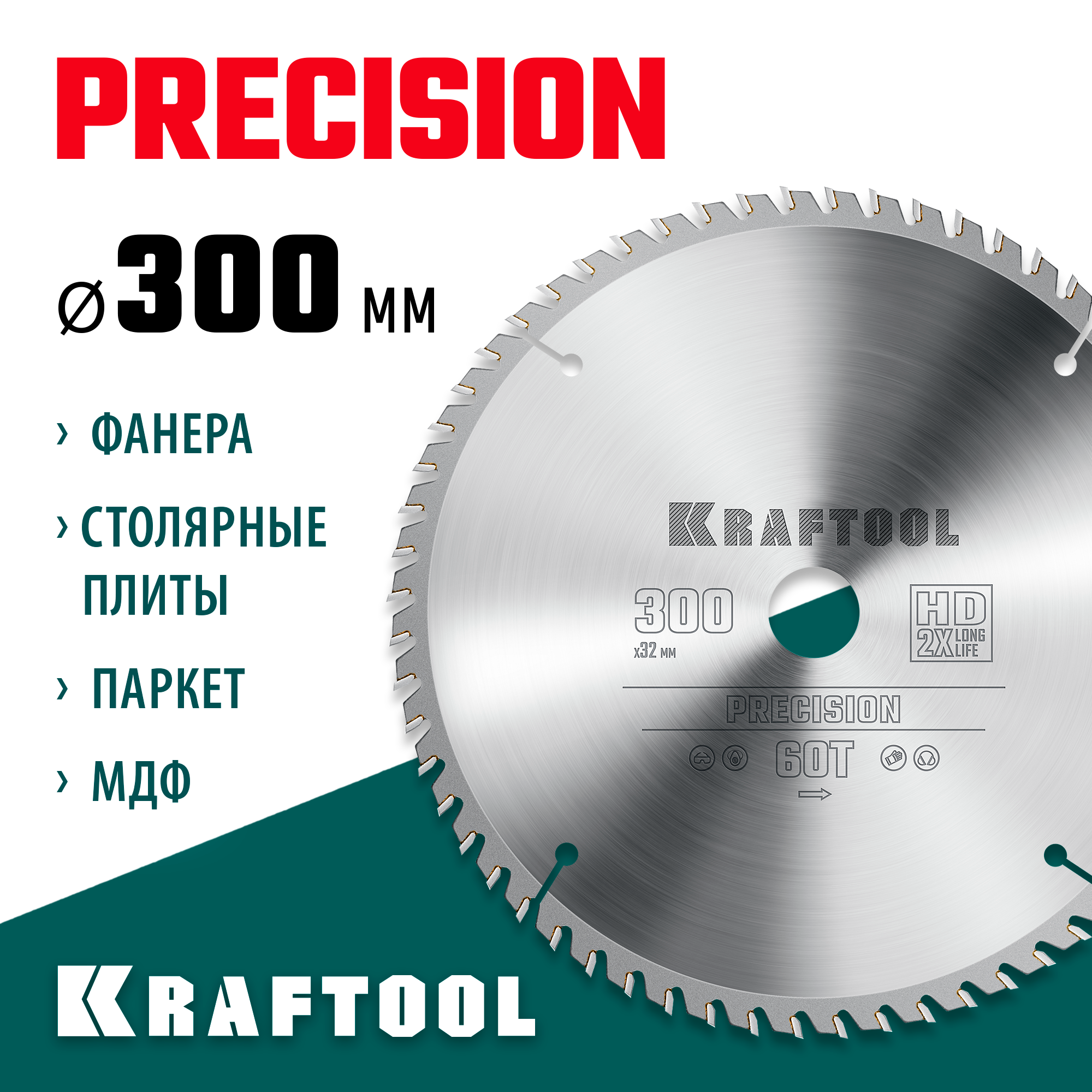 KRAFTOOL Precision, 300 х 32 мм, 60Т, пильный диск по дереву (36952-300-32)
