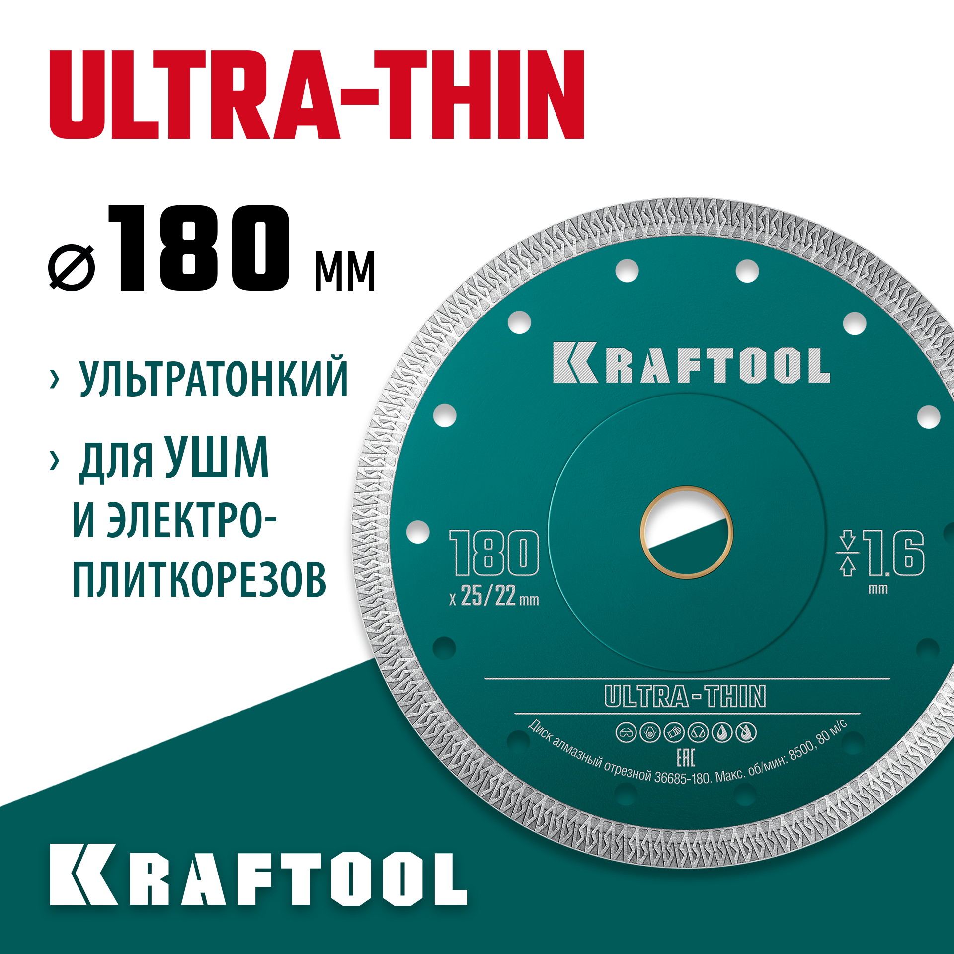 KRAFTOOL ULTRA-THIN 180х1.6 мм ультратонкий алмазный диск (36685-180)