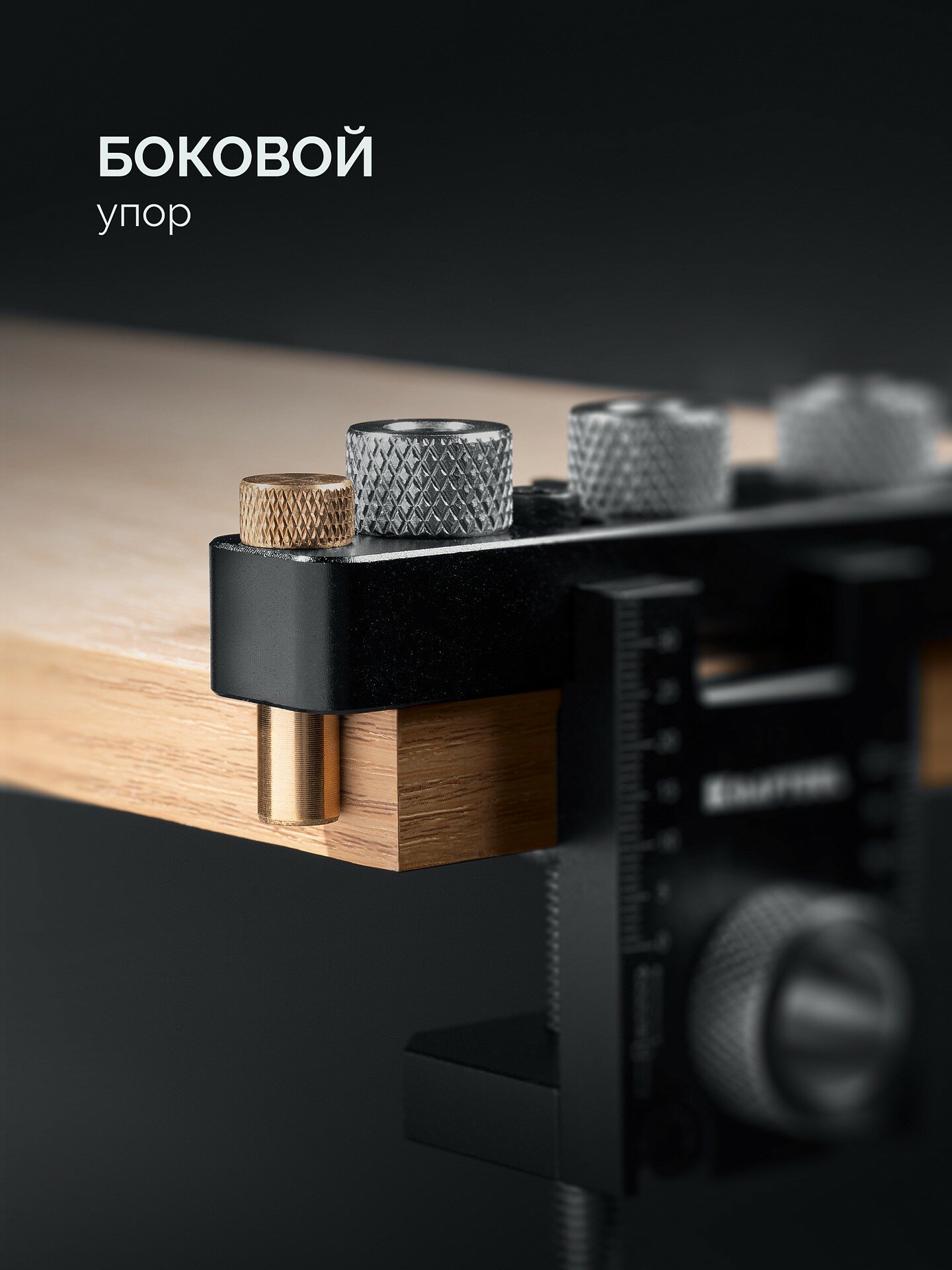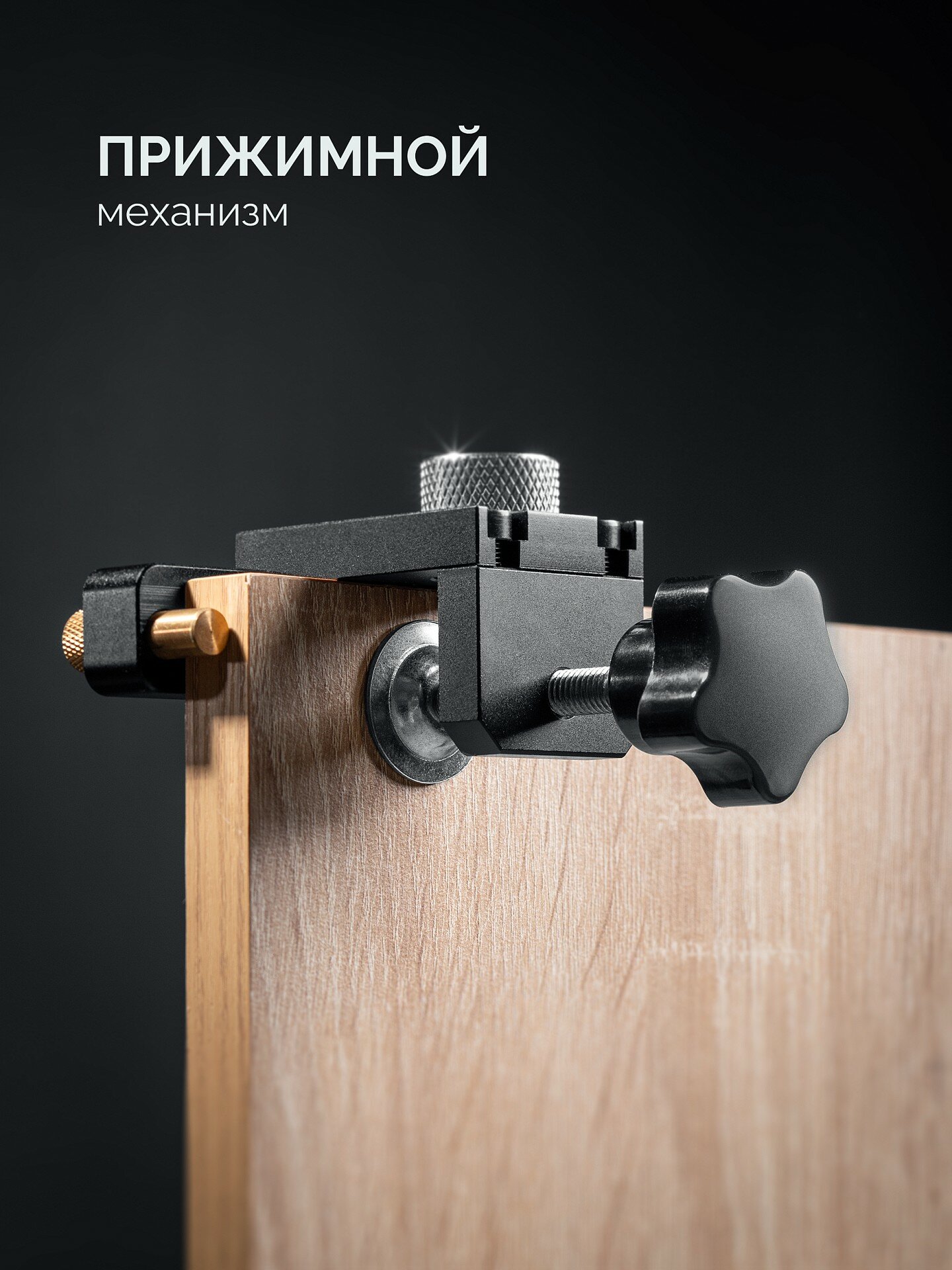 Удобный прижимной механизм позволяет легко и быстро фиксировать заготовки. Упор с направляющей для сверления под эксцентриковую стяжку обеспечивает точность и аккуратность при выполнении работ.