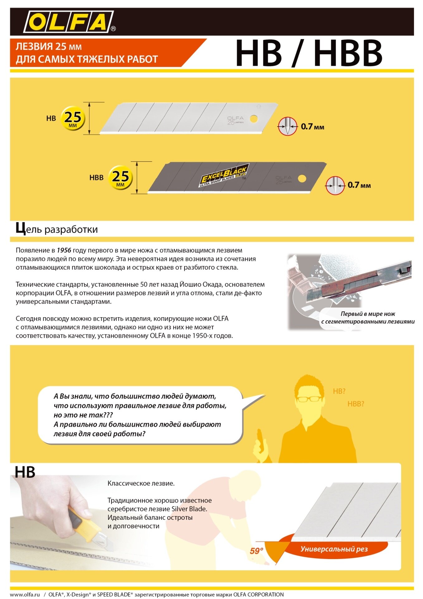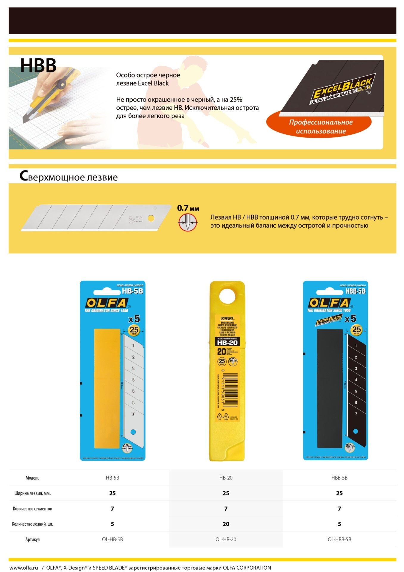 Лезвия OLFA ″EXCEL BLACK″ подходят для большинства ножей с шириной направляющей пластины 25 мм и используются для разрезания бумаги, картона, различных видов упаковочных пленок, при строительных работах и в других ситуациях, где требуется точный и аккуратный рез.