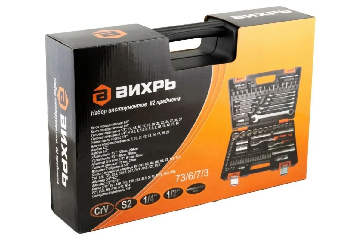 Представляем вашему вниманию универсальный набор инструментов 1/2, 1/4 дюйма, CrV, пластиковый кейс 82 предмета Вихрь 73/6/7/3, который станет отличным помощником для любого строительного или ремонтного проекта. Этот комплект состоит из 82 предметов и включает ключи, битки и другую необходимую оснастку, благодаря чему вы сможете легко справляться с различными задачами. Изготовленные из прочной хром-ванадиевой стали, инструменты обеспечивают надежность и долговечность даже при интенсивном использовании.
