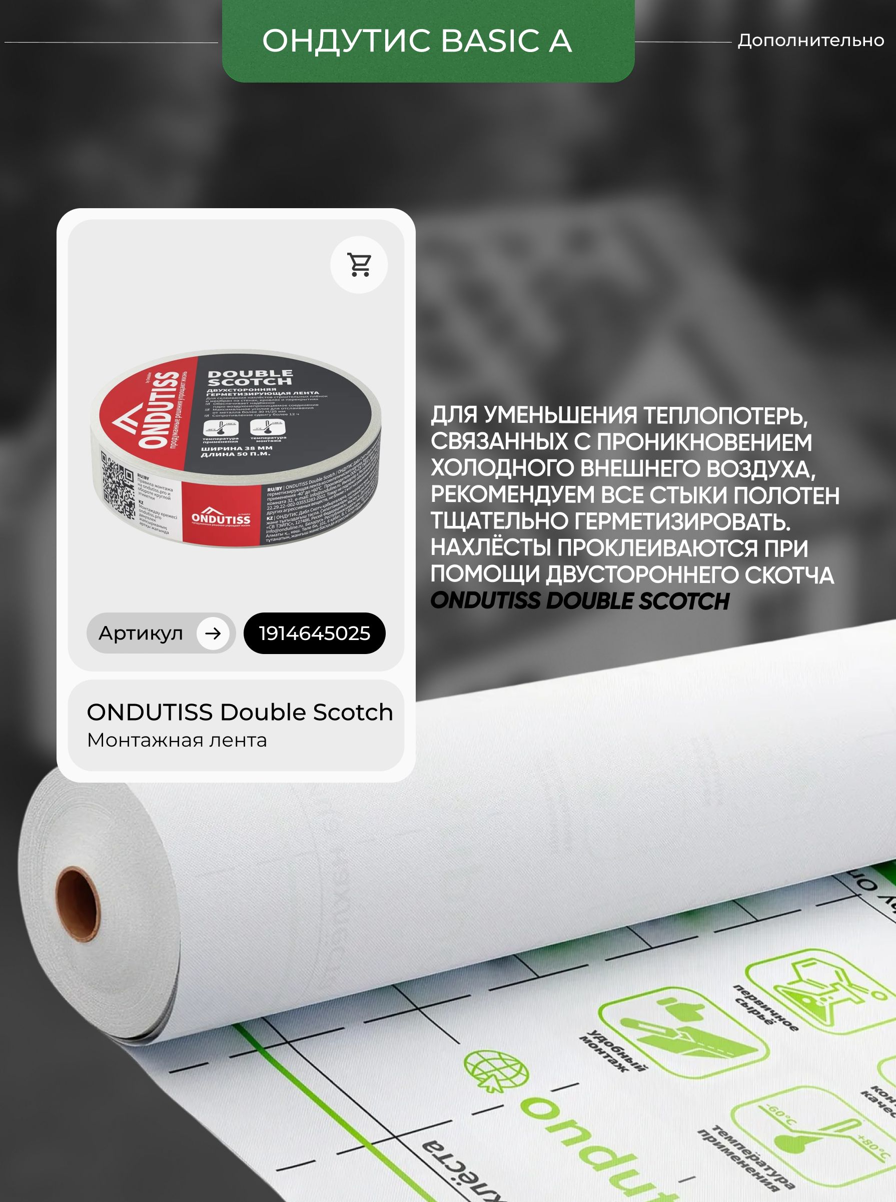 Выбирайте ONDUTISS BASIC A — это надежное решение для обеспечения защиты ваших конструкций от неблагоприятных условий. Оборудуйте ваш дом эффективной и современной ветрозащитной пленкой и наслаждайтесь комфортом и теплом на протяжении всего года.