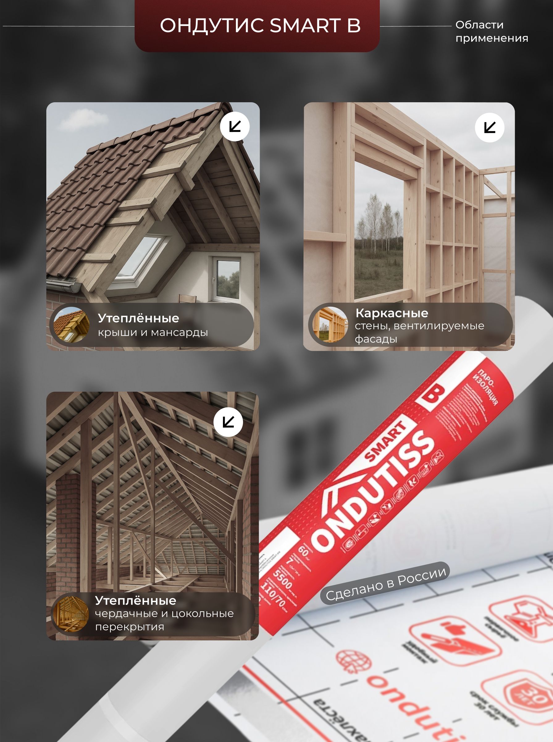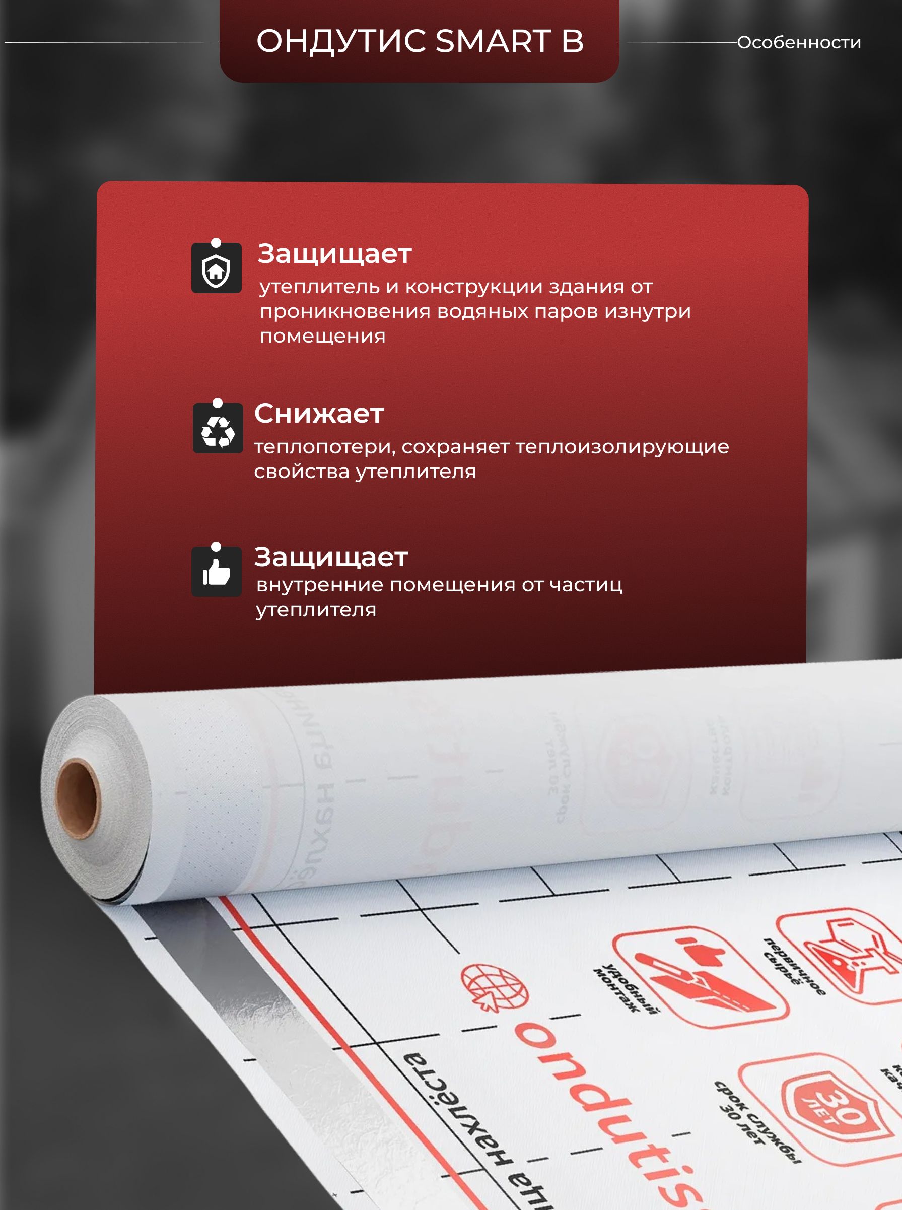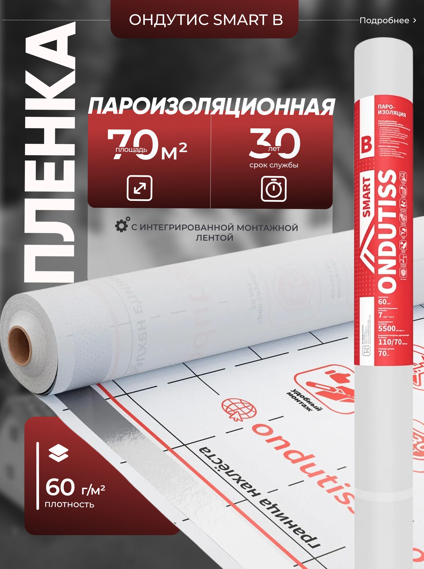 Легкость в монтаже также является одним из главных преимуществ ONDUTISS SMART B. Пленка может быть без труда установлена как профессионалами, так и любителями. Удобный размер 70м2 позволяет легко адаптировать материал под конкретные требования проекта.