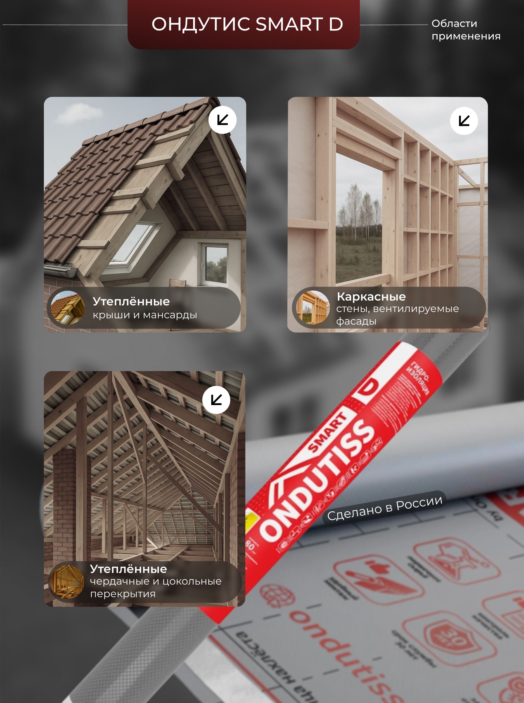 Подходит для применения в самых разных строительных сферах, гидроизоляционная пленка поможет предотвратить нежелательные последствия, такие как образование плесени и коррозия, которые могут возникнуть от избыточной влаги. Используйте ONDUTISS SMART D для создания надежной защиты своих объектов и продления срока службы строительных конструкций. Эта пленка станет неотъемлемой частью вашего успешного проекта.