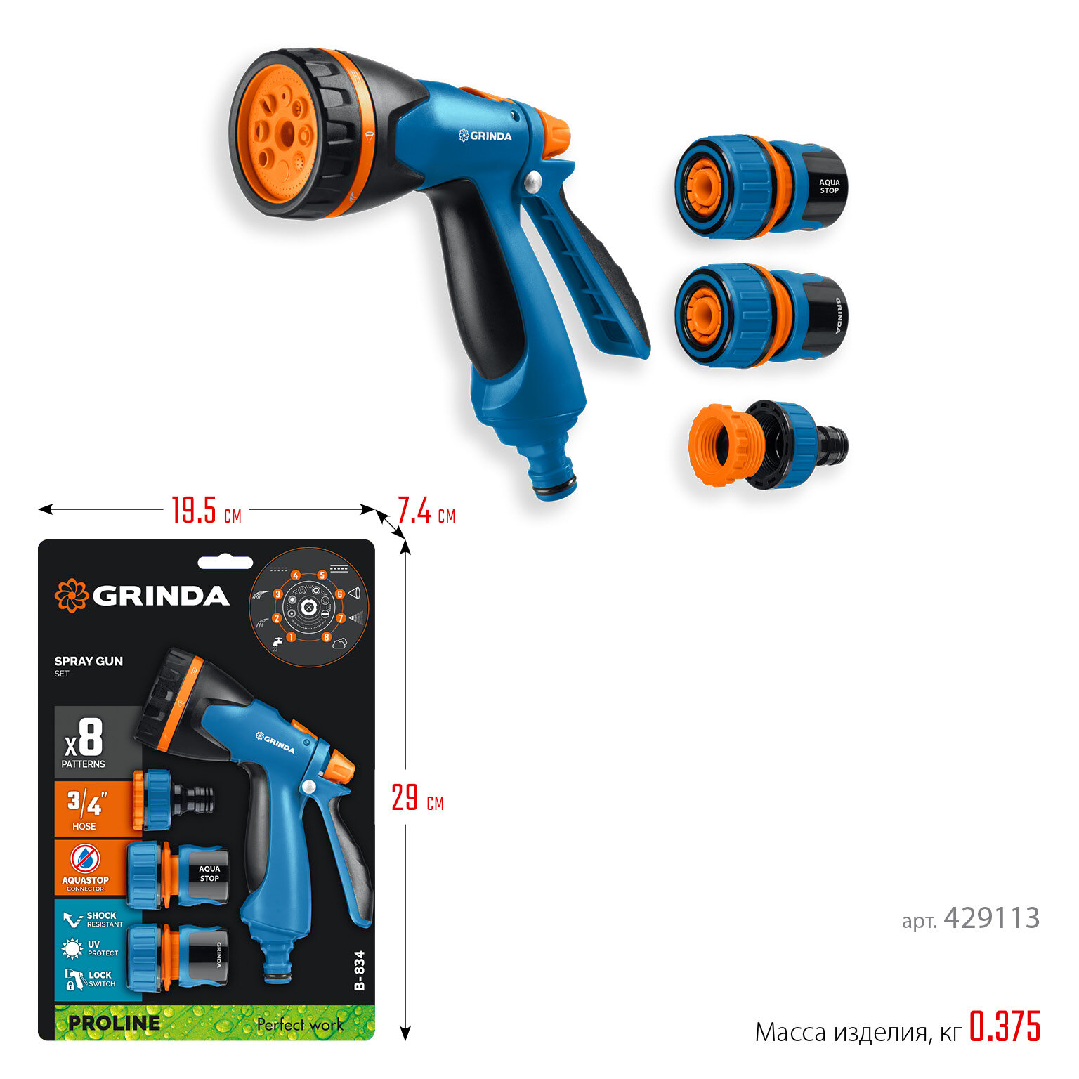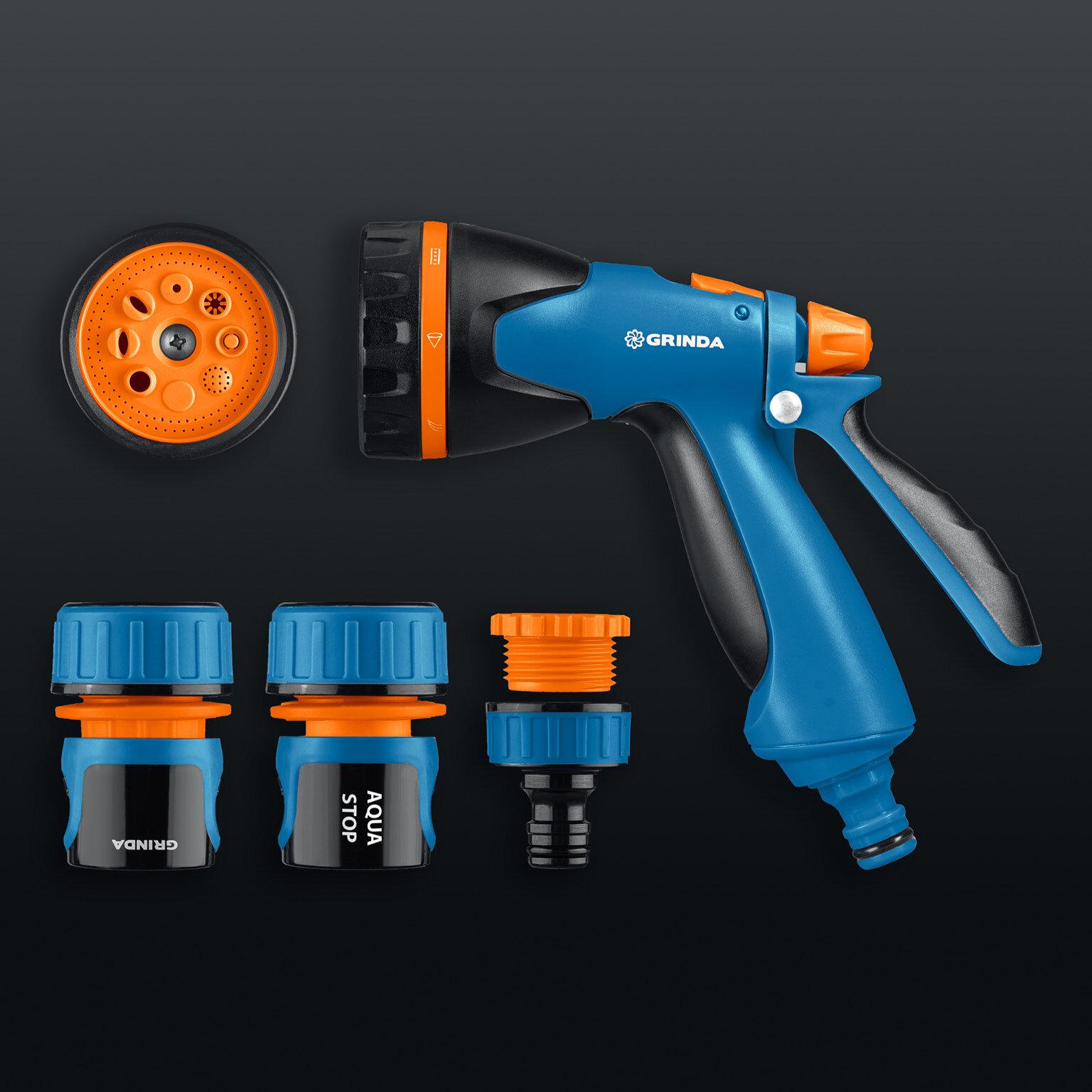 Поливочный набор GRINDA очень удобен в применении. Обеспечивает быстрое, простое и качественное подключение к практически любой поливочной системе без дополнительных аксессуаров.