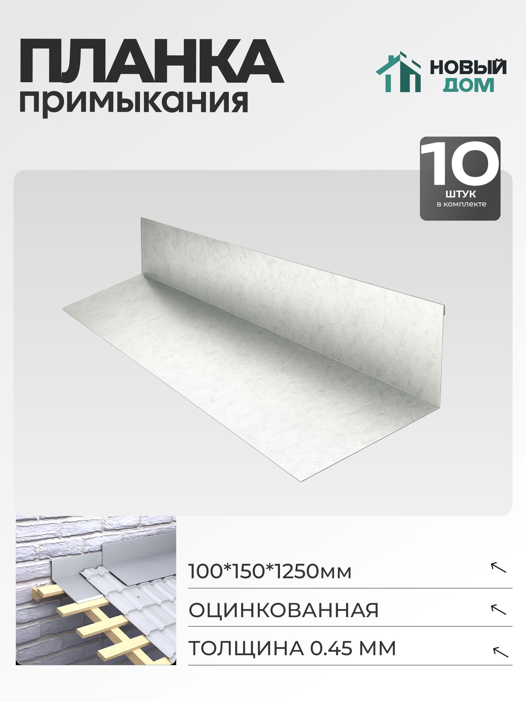 Планка примыкания с параметрами 100х150мм предназначена для надежного и аккуратного оформления стыков различных строительных поверхностей. Благодаря оцинкованному покрытию, изделие отличается стойкостью к воздействию влаги и защитой от коррозии, что особенно важно при эксплуатации в условиях переменных температур и повышенной влажности. Покрытие соответствует стандарту (RAL Zn), что гарантирует эстетичность и аккуратный внешний вид изделия на протяжении всего периода использования. Толщина изделия составляет 0,45мм, что обеспечивает баланс между прочностью и гибкостью. Длина планки равна 1250мм, что позволяет использовать ее как при монтаже кровельных конструкций, так и при устройстве фасадных элементов, обеспечивая надежность примыкания к различным покрытиям.В комплекте идет 10 элементов, что удобно для проведения работ как на небольших, так и на более крупных объектах, не требуя постоянных доукомплектований. Использование оцинкованной стали снижает необходимость частого обслуживания и позволяет сохранять защитные свойства даже при наружном применении. Оптимальные размеры изделия подходят для применения в строительстве и ремонте, а также при возведении хозяйственных построек разной конфигурации.Планка примыкания легко устанавливается, отлично фиксируется к основанию и подходит для разных типов соединений. Такое решение препятствует проникновению влаги, защищает внутренние элементы конструкции и продлевает срок службы сооружения. Гладкая поверхность изделия облегчает очистку и уход, а сдержанный внешний вид универсален для большинства проектов. Продукция, соответствующая современным стандартам качества и требованиям к безопасности, востребована как профессионалами, так и в бытовом строительстве.Применение данной планки упрощает отделочные работы, помогает создать герметичность соединений и сохранить их привлекательный внешний вид.