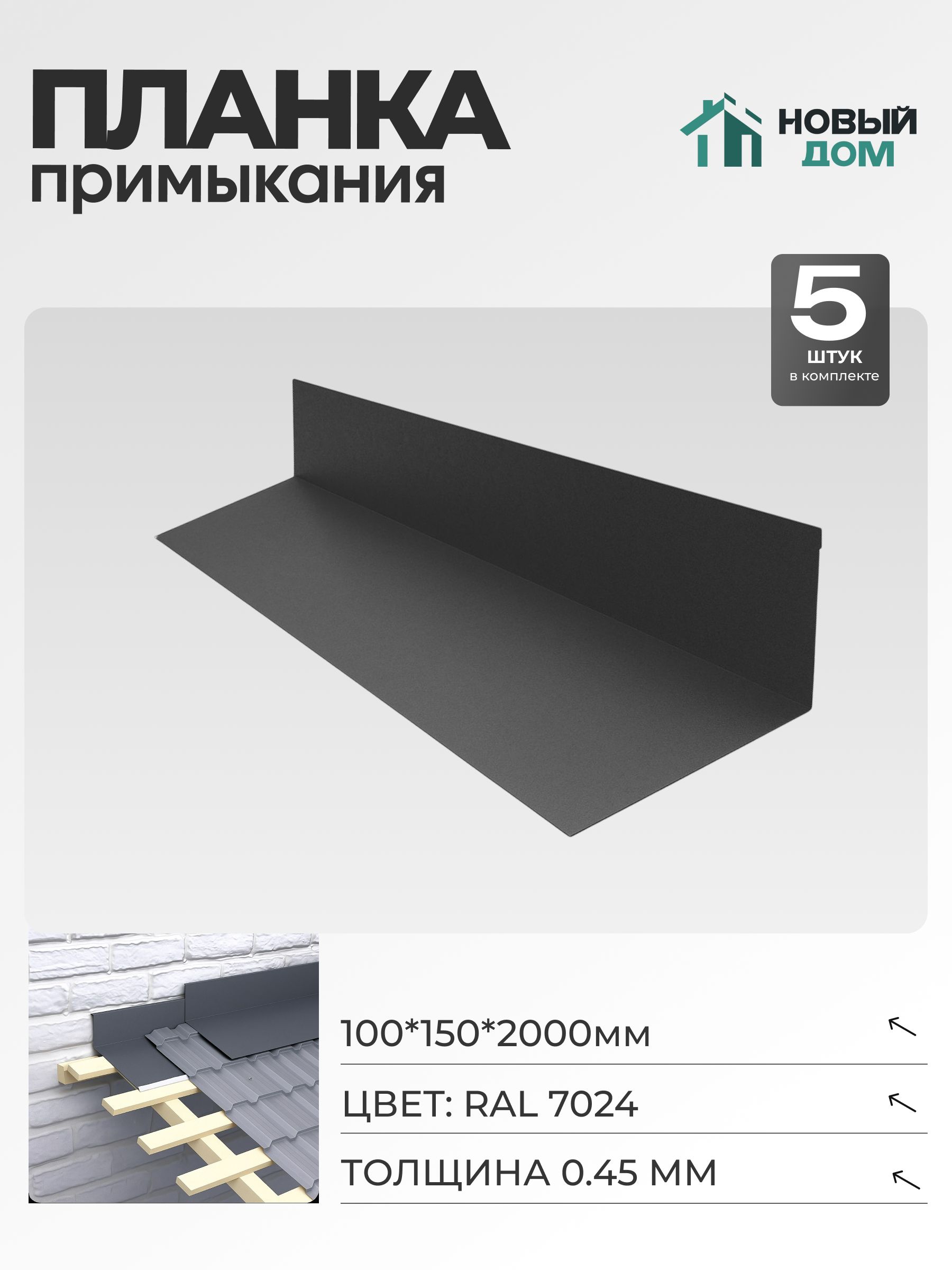 Планка примыкания — это важный элемент для оформления различных стыков и соединений на кровле или фасаде. Благодаря удобным размером 100х150мм и длине 2000мм, данный товар обеспечивает надежное закрытие мест примыканий, защищая их от воздействия влаги, пыли, ветра. Серый оттенок по системе (RAL 7024) гармонично сочетается с современными видами кровельных и фасадных материалов, создавая аккуратный эстетичный внешний вид и соответствуя актуальным архитектурным решениям.Толщина 0,45мм предотвращает деформации и делает планку достаточно прочной, чтобы она справлялась с внешними нагрузками. Такой параметр также способствует простоте монтажа — изделие сохраняет форму, при этом легко поддается обработке. Комплект состоит из 5 шт., что обеспечивает экономию времени и удобство установки на объекте.Планка примыкания создана для защиты важных соединений между разными поверхностями: карнизами, дымоходами, стенами, мансардами, окнами. Благодаря стандарту 100х150мм обеспечивается надежное перекрытие стыков, что немаловажно для предотвращения протечек. Длина 2000мм особенно удобна при необходимости обработки больших участков без лишних соединений.Серое покрытие (RAL 7024) отличается устойчивостью к ультрафиолету и механическим воздействиям, не выгорает с течением времени, сохраняет опрятный вид даже при интенсивной эксплуатации. Материал легко очищается от загрязнений и минимизирует видимость пыли благодаря своему цвету. Толщина 0,45мм соответствует требованиям прочности, что обеспечивает длительный срок службы без необходимости частой замены.Использование планки примыкания актуально как при новом строительстве, так и при ремонте кровли или фасада. Она применяется для оформления примыканий к стенам, парапетам, балконам, выступам различных конструкций. Комплект из 5 шт. подходит для комплексного решения задач на одном объекте, облегчая расчет необходимых материалов.
