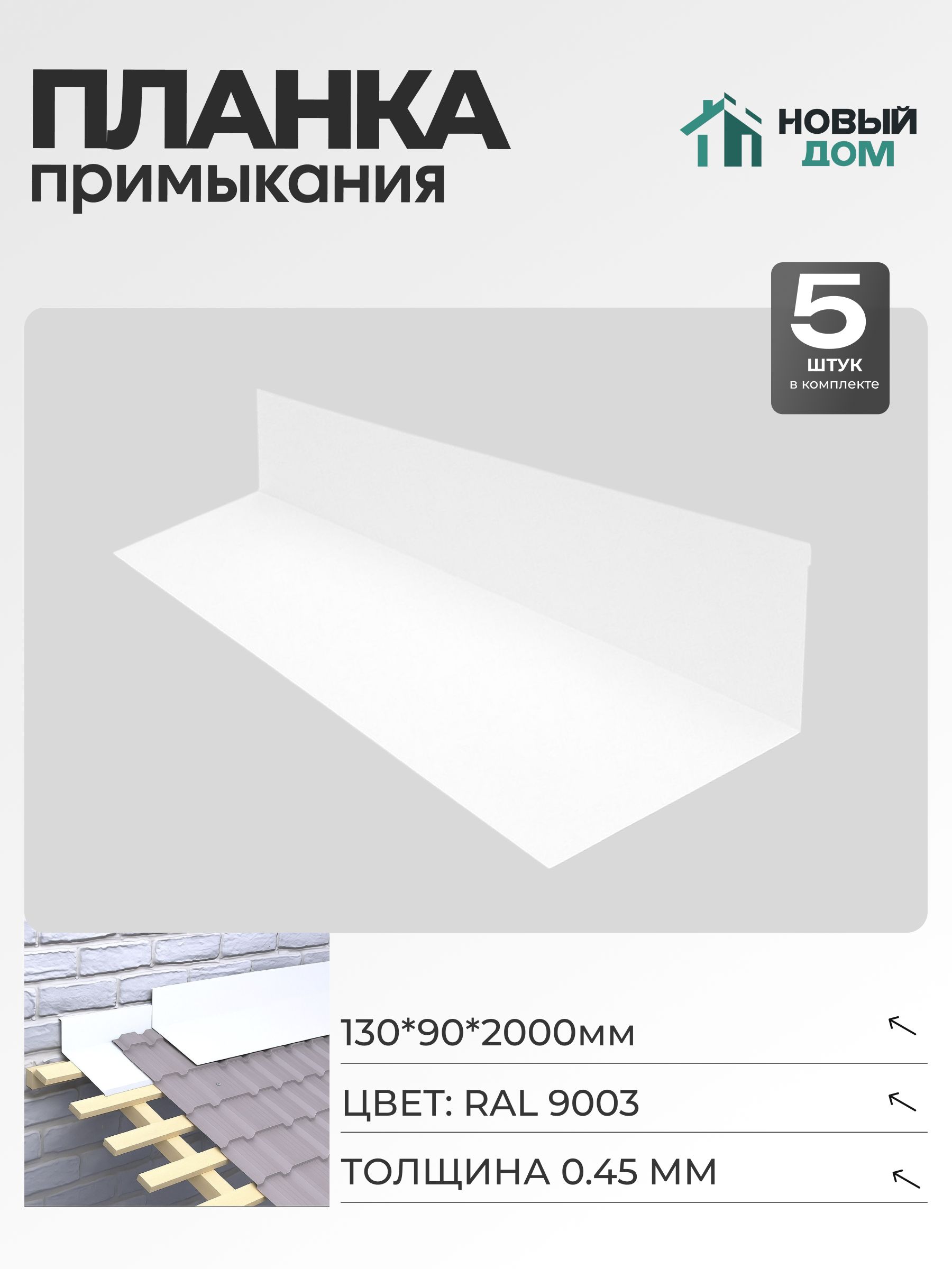 Планка примыкания 130х90мм предназначена для аккуратного и герметичного соединения различных строительных поверхностей, что обеспечивает дополнительную защиту от влаги, пыли и других внешних факторов. Благодаря своим характеристикам эта деталь станет надежным элементом в системе внешней или внутренней отделки зданий. Длина 2000мм позволяет эффективно использовать изделие на протяженных участках стыка, сокращая количество соединений и повышая общий уровень герметизации. Белый цвет (RAL9003) универсален и гармонично сочетается с большинством современных архитектурных решений, придавая аккуратный и завершенный вид конструкции.Толщина металла 0,45мм обеспечивает достаточную прочность и в то же время сохраняет легкость изделия, что облегчает его монтаж. Такая характеристика делает возможным использование примыкания на различных объектах, где важна долговечность и устойчивость к влиянию внешней среды. Благодаря комплекту из 5 шт. можно решить сразу несколько задач при облицовке, обустройстве кровли или фасада. Изделие удобно использовать как в индивидуальном строительстве, так и на объектах коммерческого назначения.Планка разработана для монтажа в месте стыковки двух плоских поверхностей, где требуется аккуратное и прочное соединение. Примыкания могут быть выполнены как на горизонтальных, так и на вертикальных участках, что обеспечивает универсальность применения. Производится из оцинкованного материала, который дополнительно защищен покрытием, соответствующем стандарту Белый (RAL9003), закрепляя защитные и декоративные качества изделия. Комплект из 5 шт. позволяет покрывать значительные площади за один раз, экономя время на оформление необходимых стыков.Размер 130х90мм выбран для максимального соответствия стандартным требованиям отделочных работ, что делает изделие востребованным среди специалистов и домашних мастеров.