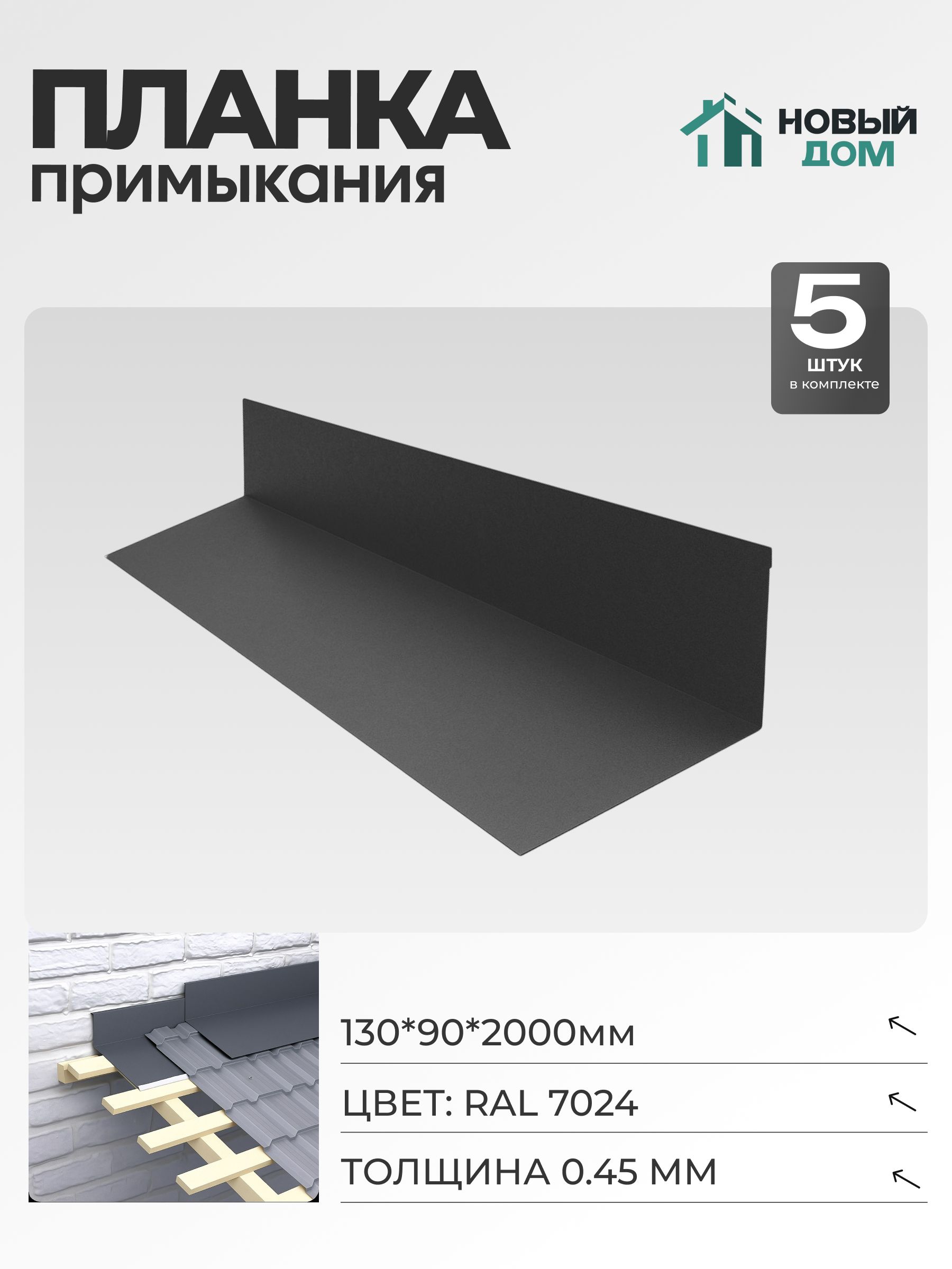 Планка примыкания размером 130х90 мм предназначена для надежного соединения конструктивных элементов фасадов и кровли. Изготовлена из прочного металла толщиной 0,45 мм, что обеспечивает высокую стойкость к механическим повреждениям и внешним воздействиям. Цвет серый соответствует оттенку RAL 7024, что делает изделие универсальным для различных архитектурных решений и гармонирует с большинством отделочных материалов.Длина планки составляет 2000 мм, что позволяет использовать изделие для различных монтажных задач без необходимости дополнительного подрезания. В комплекте поставляется 5 штук, что оптимально для выполнения работ средней площади или нескольких участков примыкания. Такой набор облегчает планирование и расчет необходимых материалов.Планка предназначена для создания надежного и долговечного стыка между поверхность стены и кровельным покрытием. Ее конструкция обеспечивает защиту от проникновения влаги и предотвращает образование щелей, что играет важную роль в поддержании теплового режима и целостности конструкции. Применение изделий с точными геометрическими параметрами 130х90 мм гарантирует аккуратный внешний вид и удобство монтажа.Универсальный серый оттенок (RAL 7024) легко сочетается с различными типами отделочных материалов и увеличивает срок службы за счет высокого уровня сопротивляемости внешним воздействиям. Тонкая, но прочная сталь с толщиной 0,45 мм хорошо поддается обработке, что облегчает установку и обеспечивает правильное прилегание к поверхности.В комплект, состоящий из 5 штук, входят изделия с одинаковыми параметрами, что удобно для последовательной работы и позволяет снизить время на поиск и подбор дополнительных элементов. Это важно при выполнении ремонтных или новых строительных работ, где требуется надежная планка примыкания с определенными геометрическими характеристиками.Данная продукция подходит для использования в самых разных климатических зонах и условиях эксплуатации.