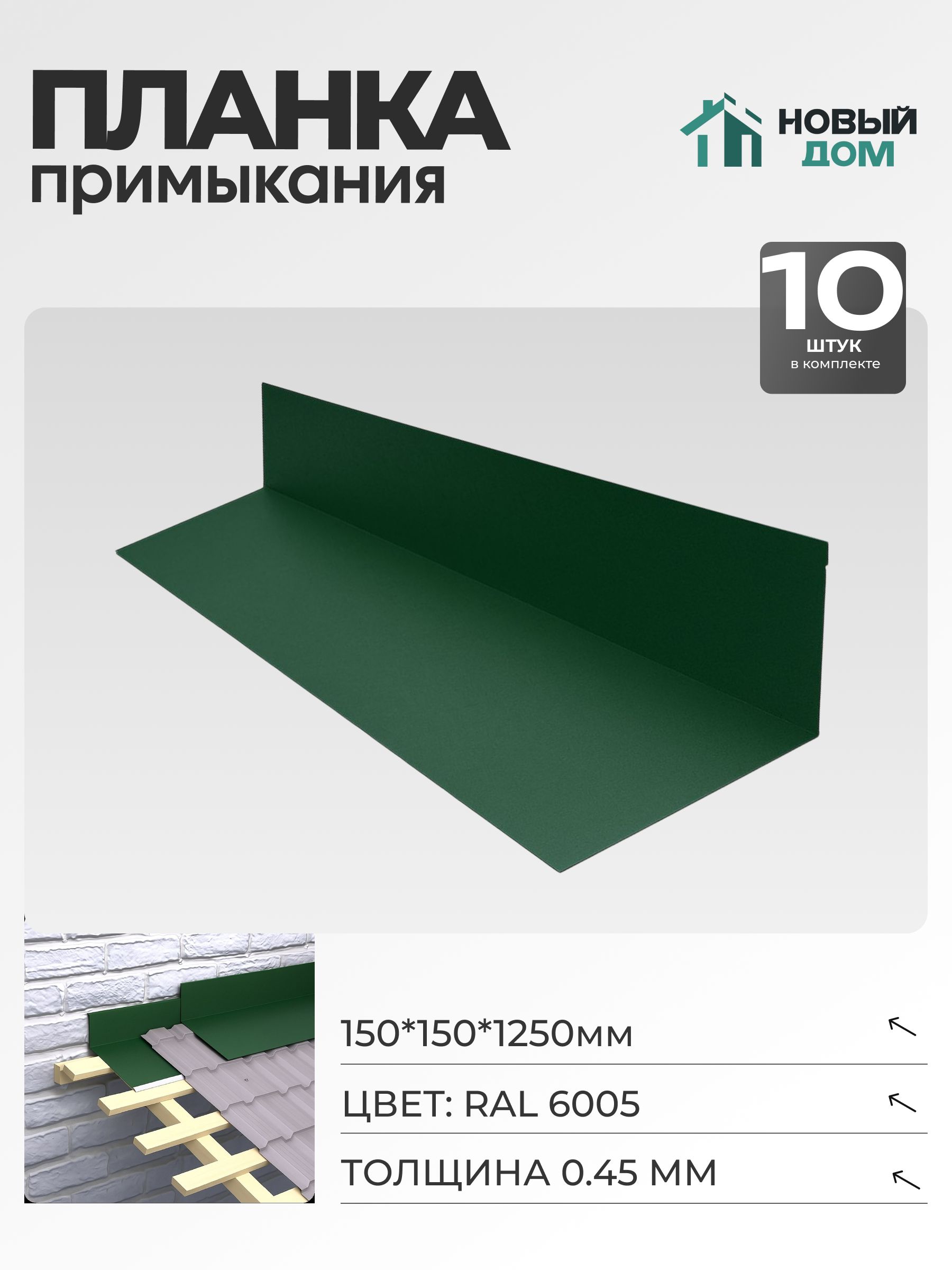 Планка примыкания 150х150мм с длиной 1250мм выполнена из металла толщиной 0,45мм и окрашена в зеленый цвет с кодом (RAL 6005). Этот элемент используется для обеспечения надежного соединения кровельных и фасадных конструкций, предотвращая проникновение влаги и улучшая защиту стыков. Цвет зеленый соответствует стандарту RAL 6005 и подходит для комплексного оформления зданий с подобной цветовой гаммой. Поставляется данный набор в комплекте из 10 штук, что облегчает расчет необходимого количества материалов для выполнения работ. Размер 150х150мм обеспечивает хорошую площадь прилегания, а длина 1250мм позволяет использовать планку на различных участках поверхности с минимальной необходимостью подрезки. Толщина 0,45мм гарантирует прочность и долговечность конструкции, сохраняя при этом небольшой вес изделия. Такая планка примыкания отлично подойдет для монтажа в условиях эксплуатации, требующих качественной герметизации стыков. Ее использование способствует устойчивости к коррозии благодаря специальному покрытию зеленого цвета (RAL 6005), что повышает срок службы. Этот комплект из 10 штук позволяет сразу обеспечить достаточное количество материалов для организации правильного примыкания на местах стыков кровли и стен, что важно для сохранения теплоизоляции и предотвращения протечек. Длина планки составляет 1250мм, что оптимально для удобного монтажа и снижает количество стыков на поверхности. Размер 150х150мм подробно характеризует габариты изделия и выделяет его среди аналогов, пригодных для создания качественного примыкания в строительных или ремонтных работах. Продукт сочетает в себе практичность и функциональность, обеспечивая надежное сопряжение элементов конструкции без значительного увеличения массы и толщины. Зеленый оттенок (RAL 6005) используется в оформлении фасадов и кровель, поддерживая эстетическое единство зданий.