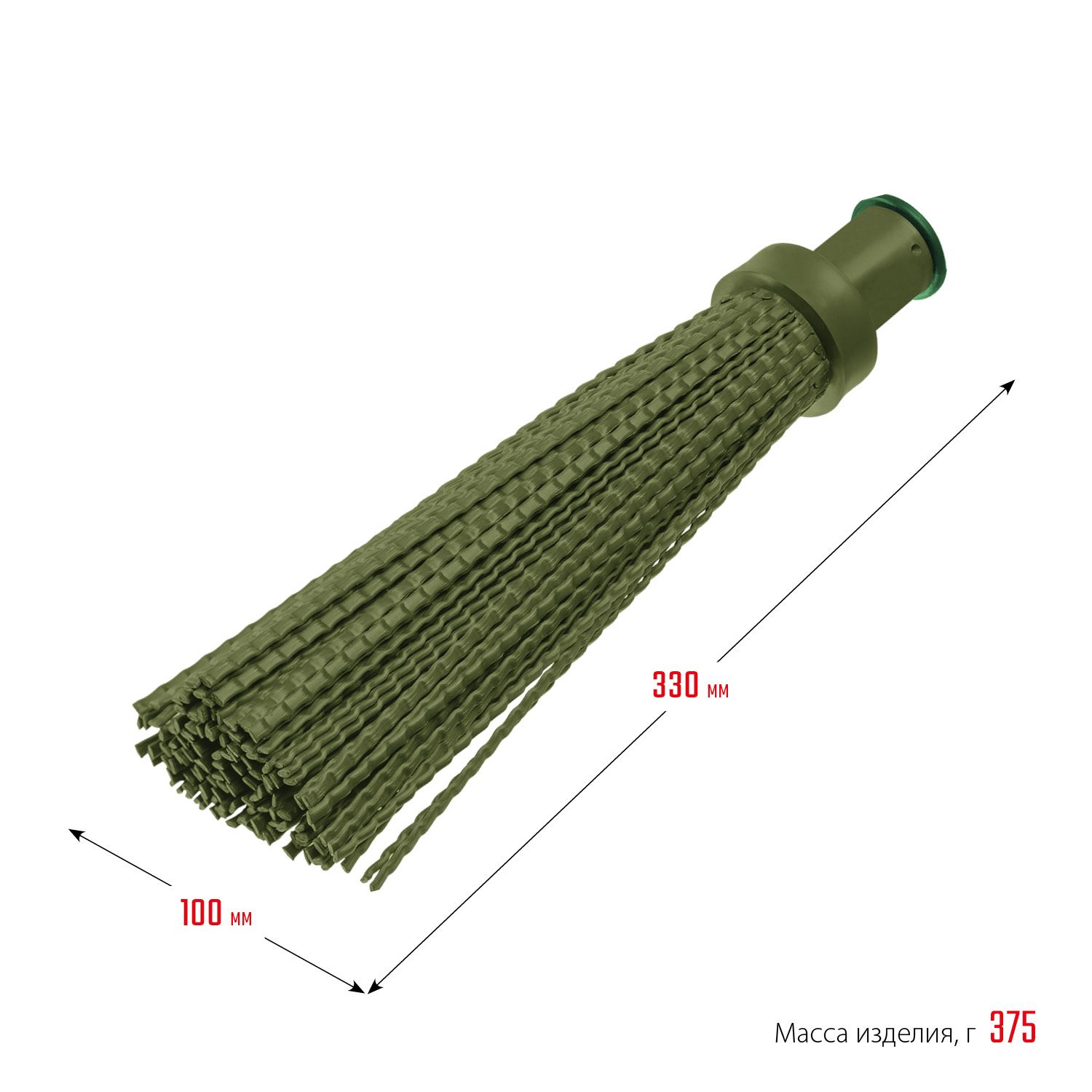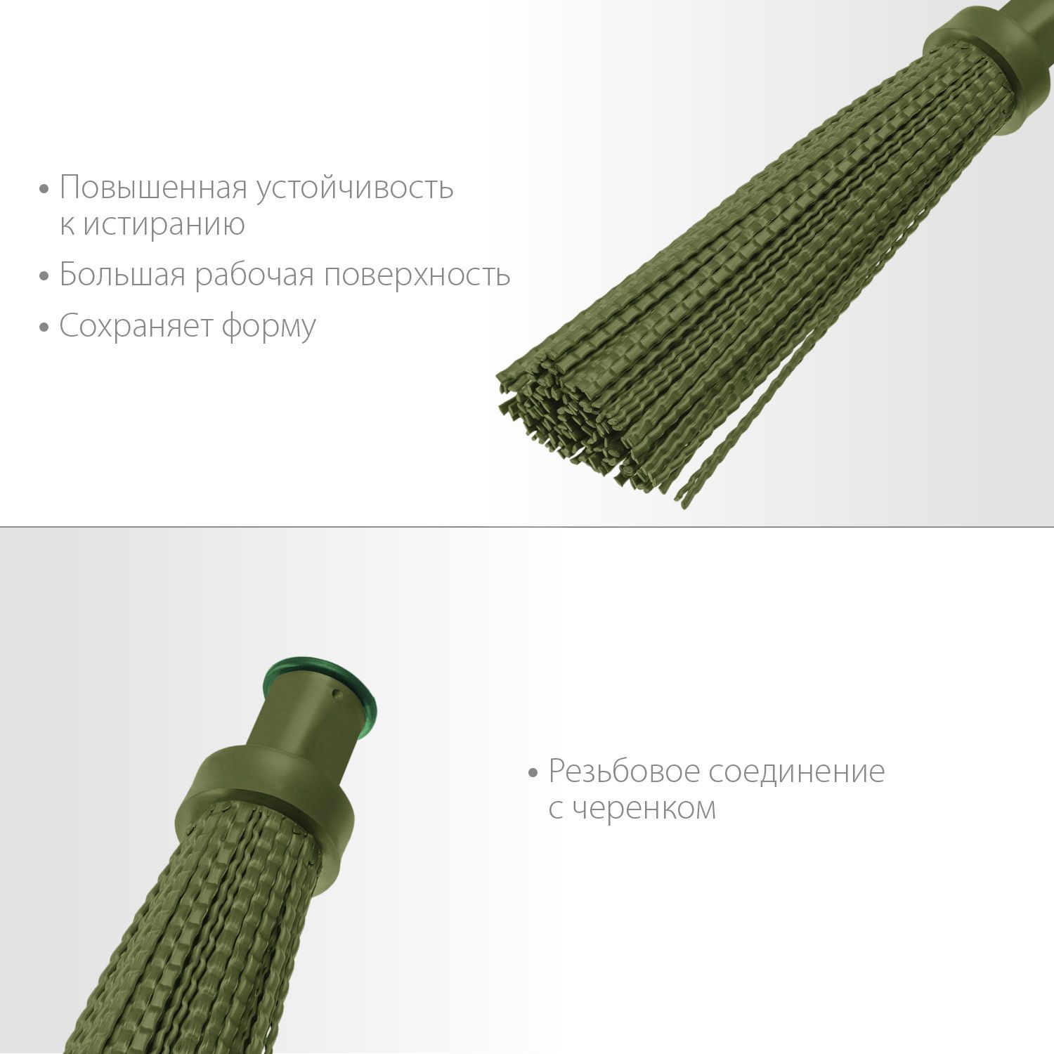 Метла имеет коническое резьбовое соединение, которое позволяет легко прикрепить ее к ручке. Рабочая часть метлы имеет круглую форму, что делает ее удобной для использования в любых условиях.