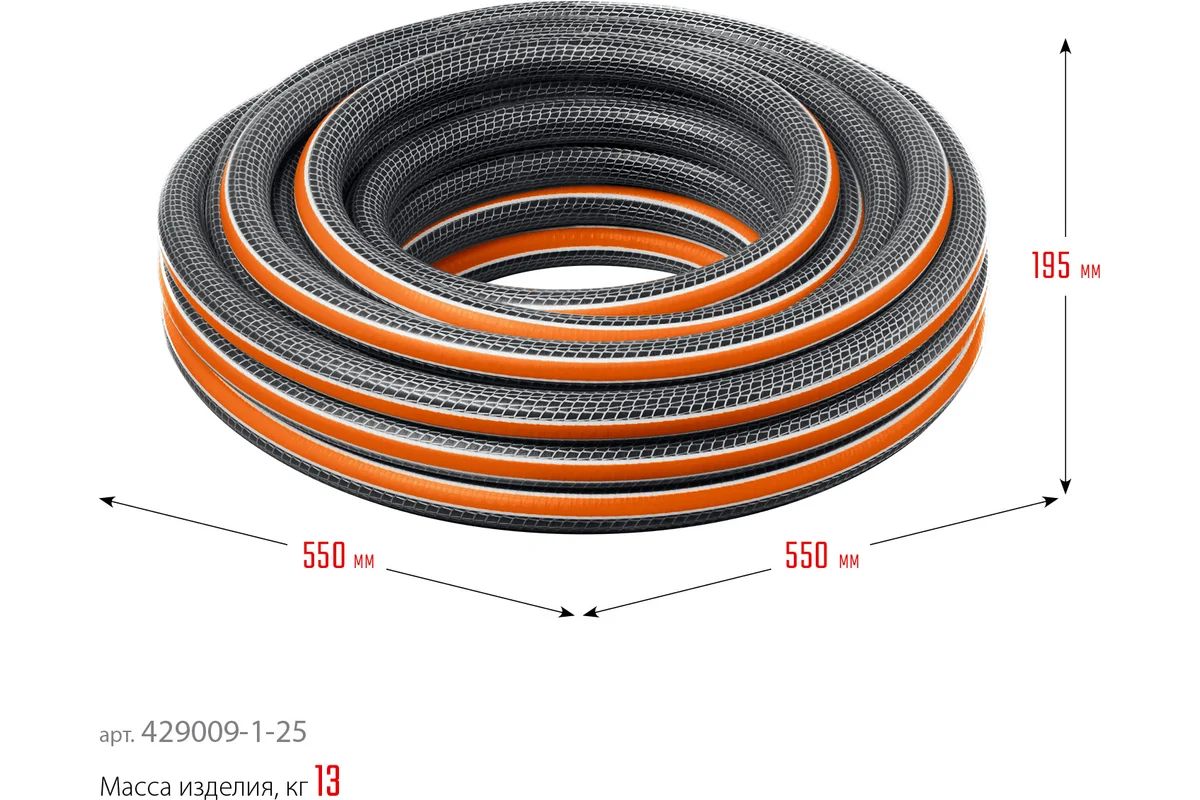 Шланг GRINDA ULTRA 6 оснащен двойным армированием, что обеспечивает дополнительную прочность и устойчивость к внешним воздействиям. Это позволяет использовать шланг в различных условиях, включая суровые климатические условия и интенсивное использование.