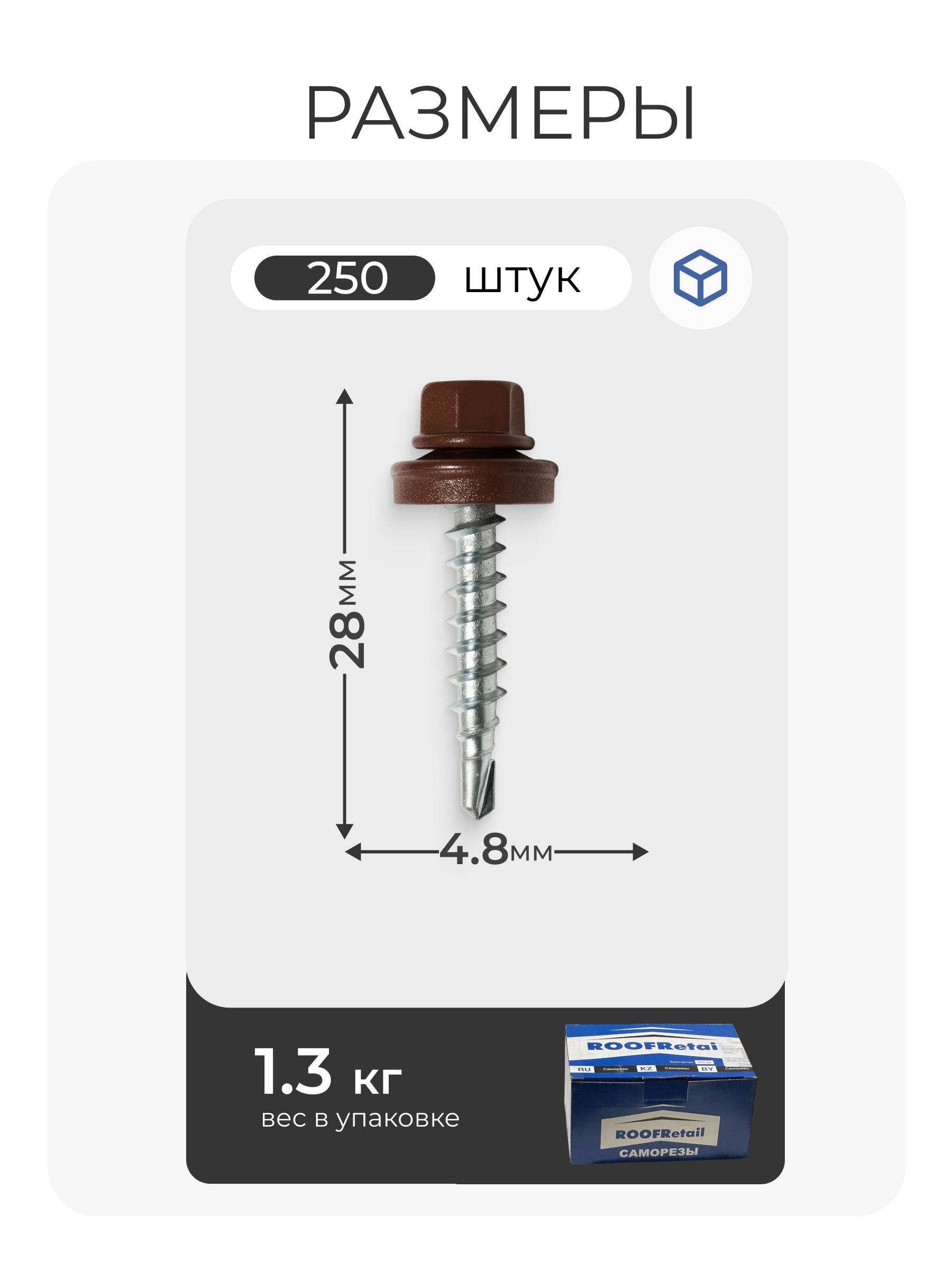 Комплектуется пресс-шайбой, которая усиливает плотность соединения и исключает протечки. Элегантный коричневый цвет гармонично впишется в современный дизайн кровли.