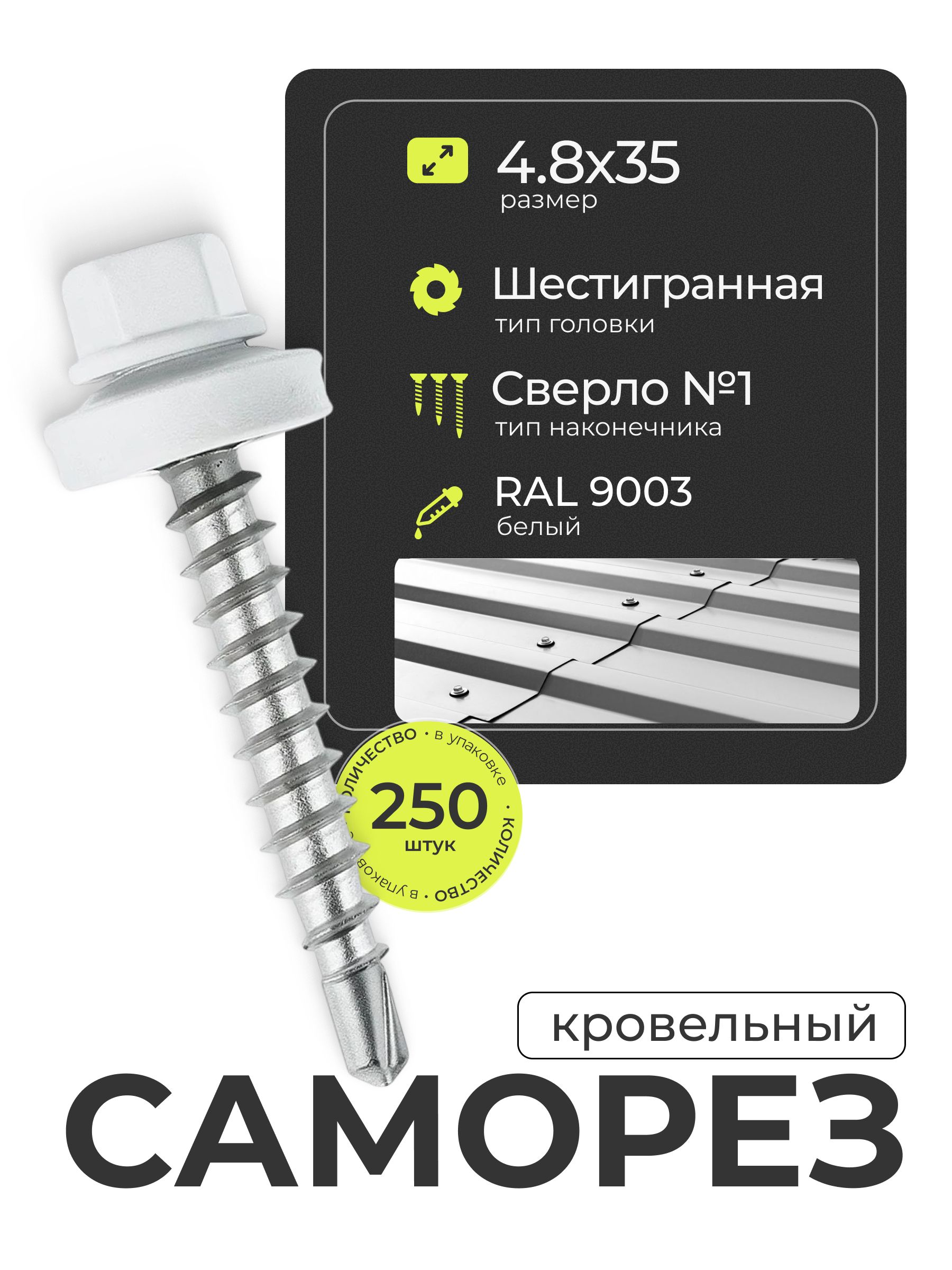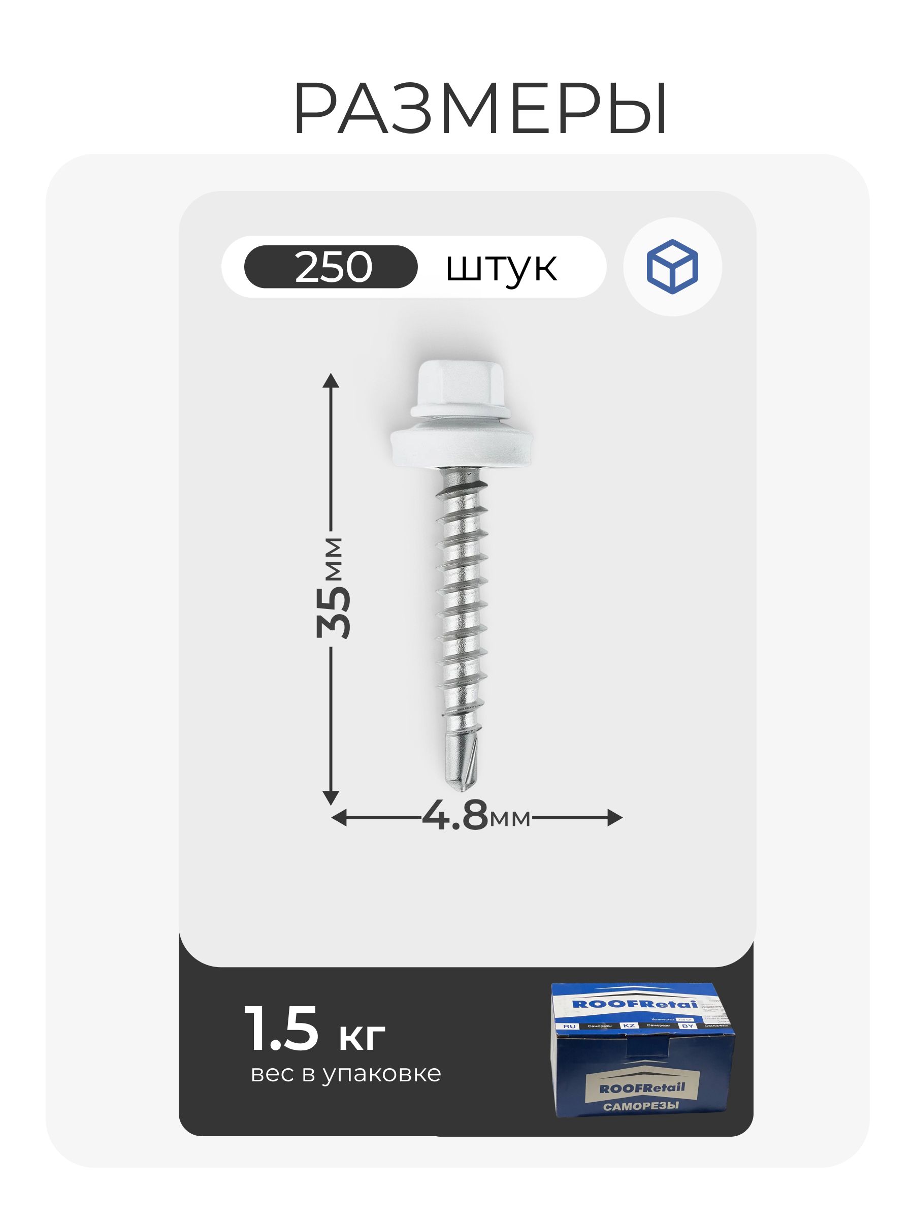 Кровельный саморез ROOFRetail 4,8×35 мм белого цвета