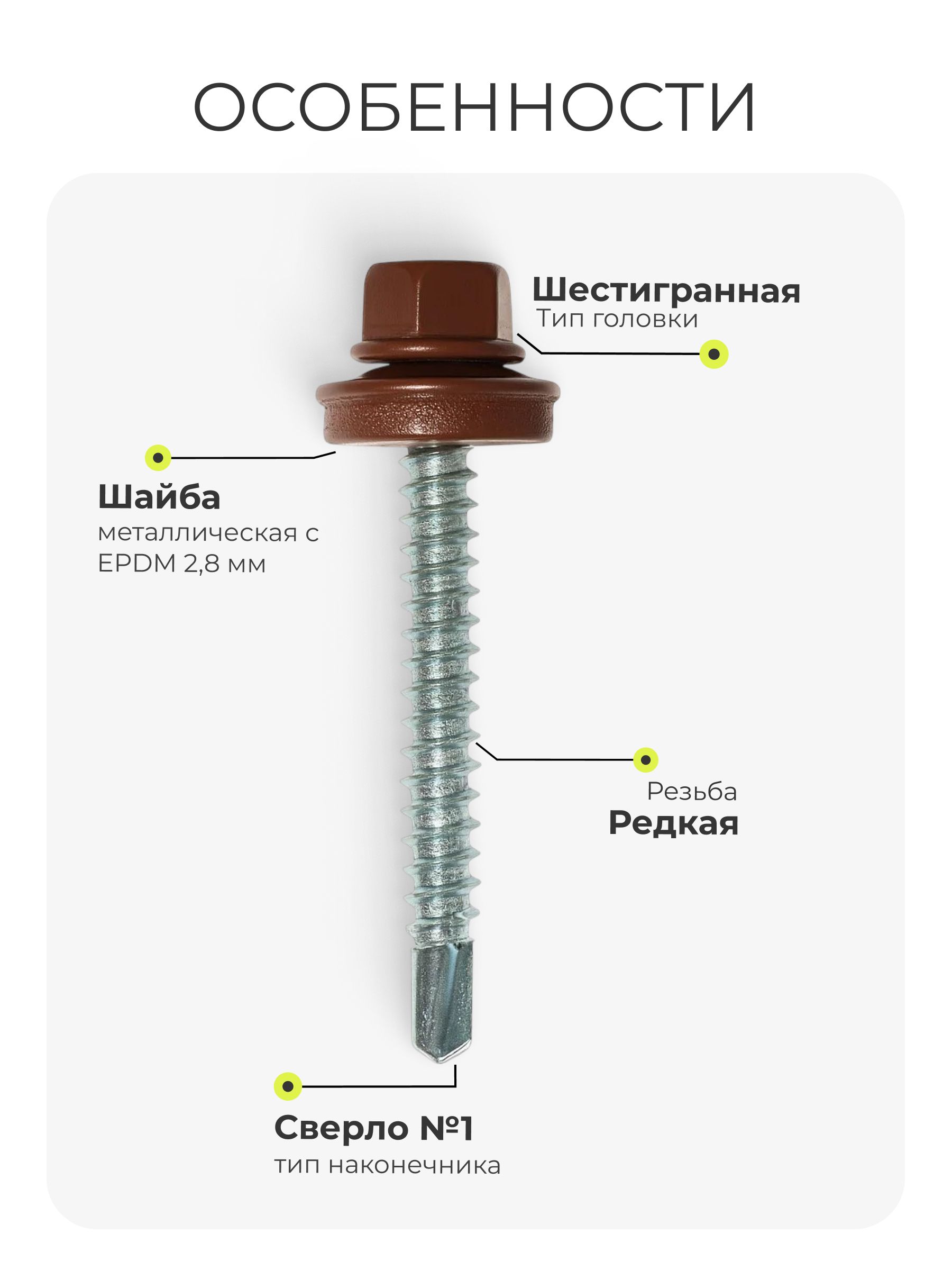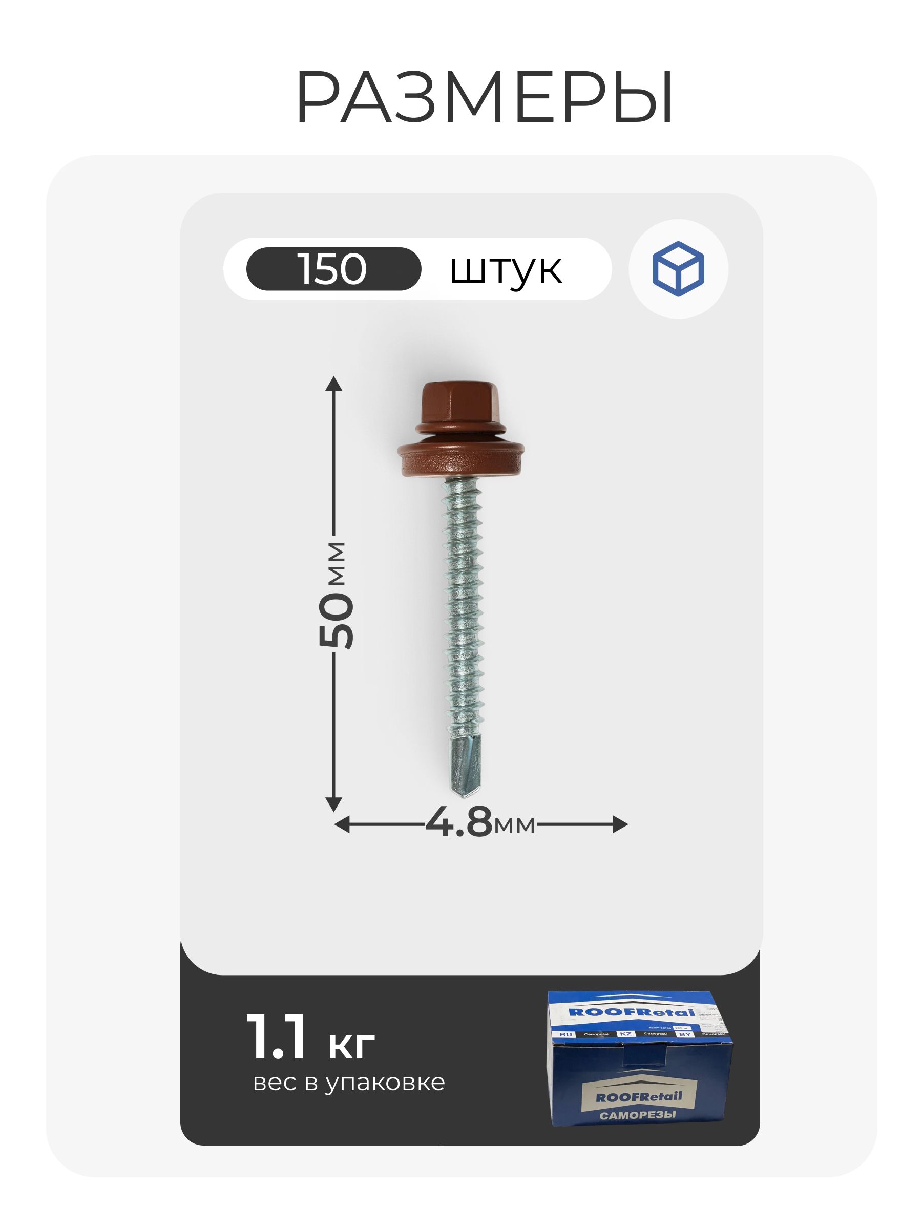 Саморез кровельный 4,8х50 ROOFRetail RAL8017 Коричневый шоколад, 150 шт, упаковка