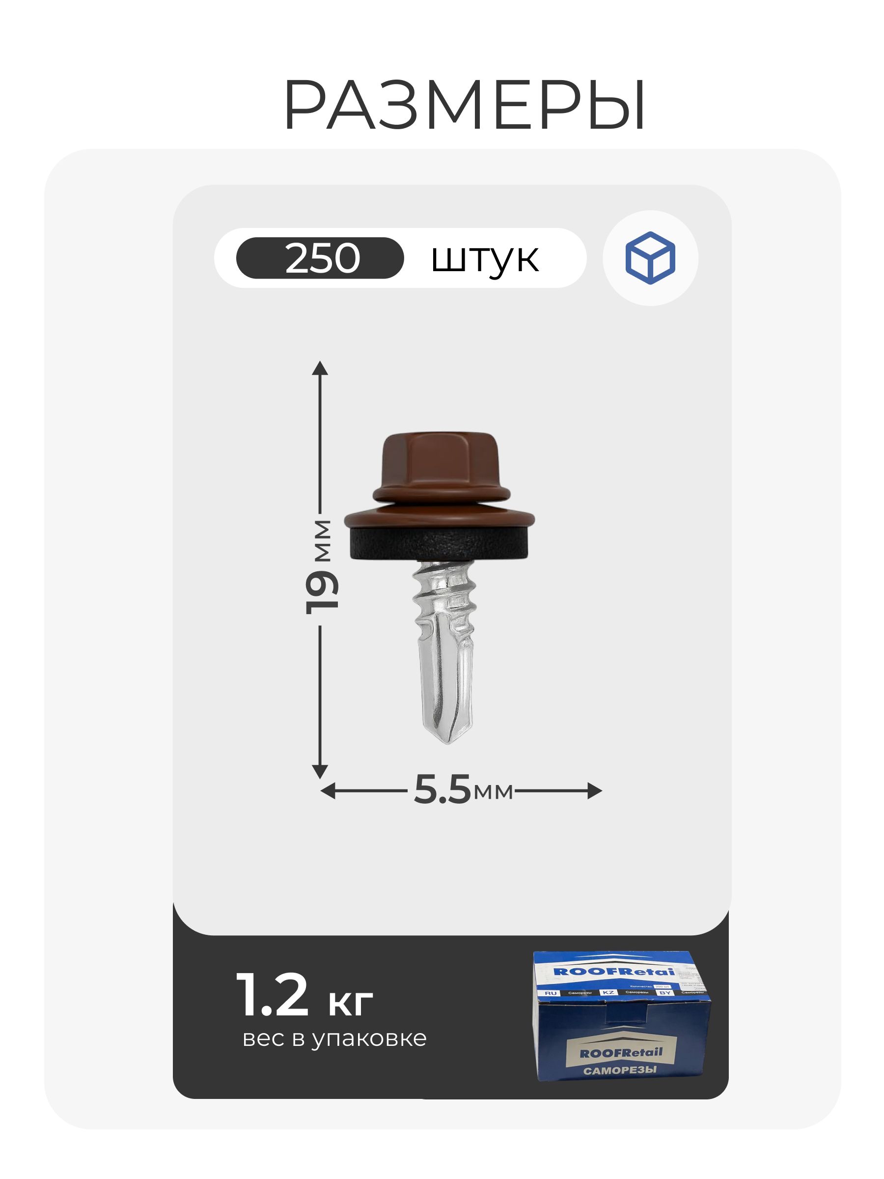Саморез кровельный 5,5х19 ROOFRetail RAL8017 Коричневый шоколад