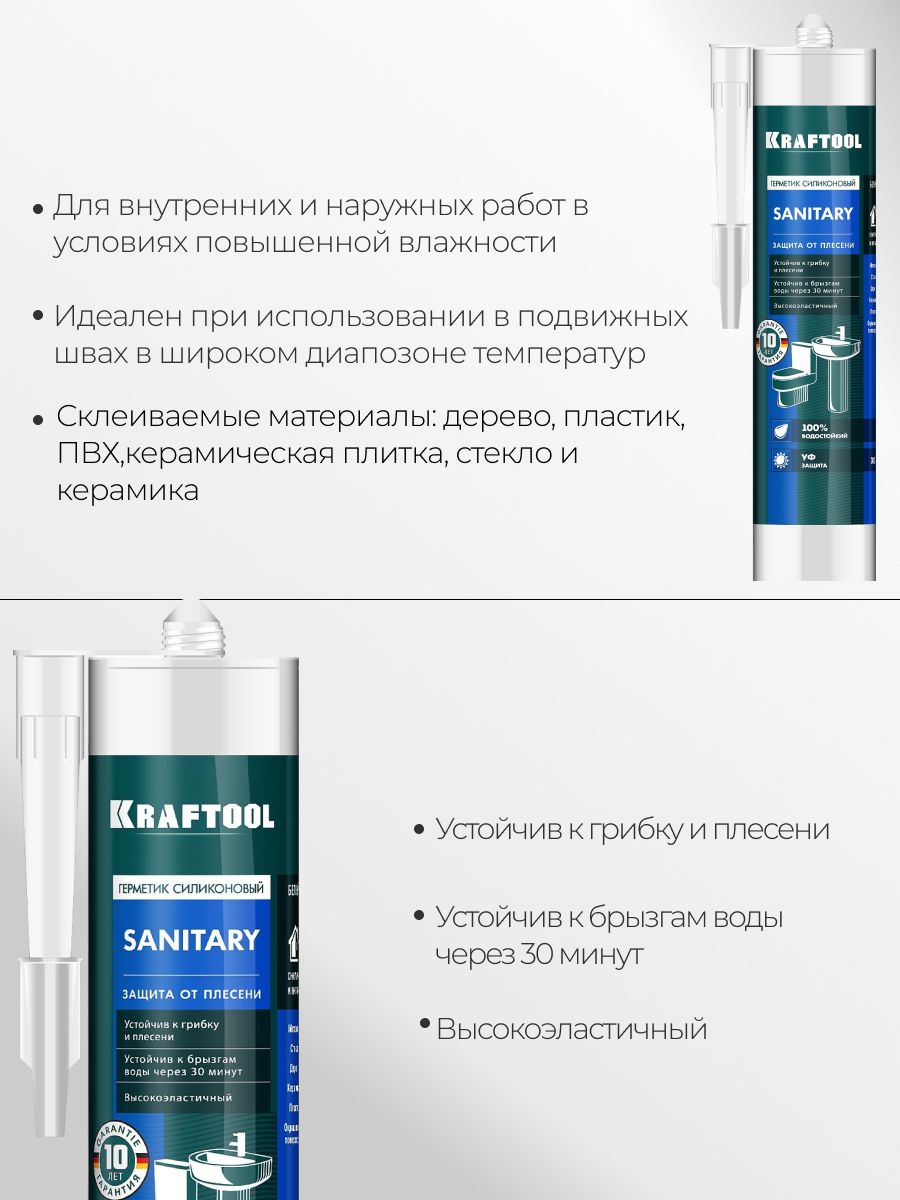 Выбирая санитарный силиконовый герметик KRAFTOOL SANITARY, вы получаете надежный и качественный продукт, который обеспечит герметизацию и защиту ваших поверхностей на долгие годы.