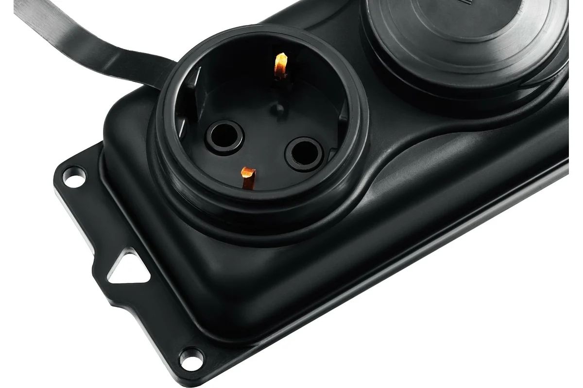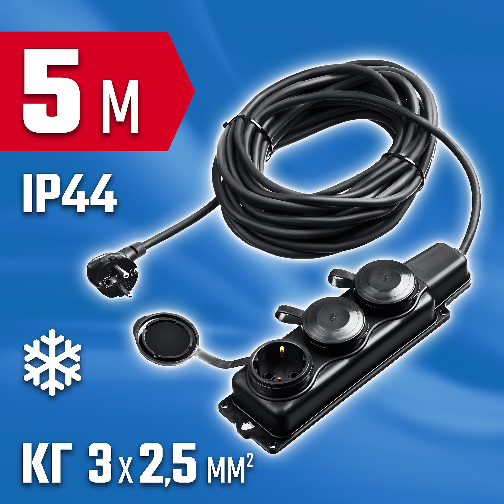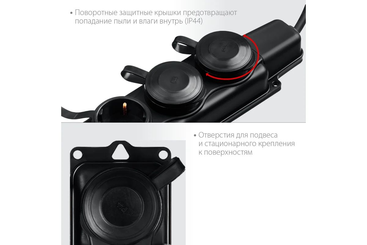 Степень защиты IP44 гарантирует защиту от пыли и брызг воды, что делает удлинитель надежным и долговечным. Это позволяет использовать его в различных условиях, включая работу на улице или в помещениях с повышенной влажностью.