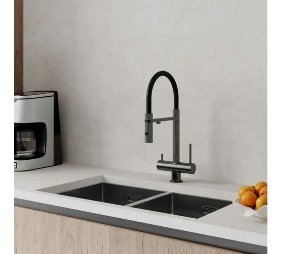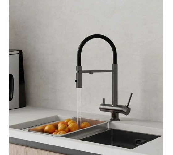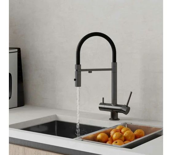Смеситель для кухни с фильтром и гибким изливом, графит, IDDIS