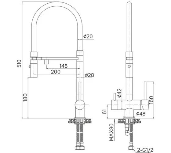 Рычажное управление и керамический картридж обеспечивают плавную регулировку потока и долговечность механизма. Компактная конструкция идеально впишется в любую кухню, сочетая практичность и стиль.